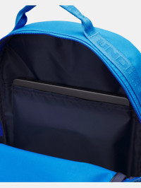One of our most popular backpacks.Light, tough, and water rolls right off. Product Details - Water-resistant UA Storm technology keeps your essentials dry - Soft-lined laptop sleeve holds up to 15" MacBook Pro® or similarly sized laptop - 1 zip-shut main compartment & large, zippered valuables pocket at the front - Center front drop-in water bottle pocket - Jacquard wordmark webbing across top - Top grab handle Size & Fit - One Size Fits Most Space & Care - Style #: 1378415 - Dimensions When Full: 11.8"W x 17.7"H x 5.1"L - Volume: 25 L - 100% Polyester - Imported