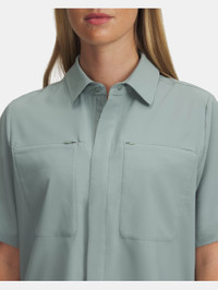 This gear is built for the water.The lightweight woven fabric moves with you through your cast, the mesh panels help keep you cool, and the sun protection keeps you covered. Product Details - Lightweight, durable woven fabric with built in stretch for greater mobility - UPF 50+ protects your skin from the sun's harmful rays - Material wicks sweat & dries really fast - Mesh panels on back & interior collar for added ventilation & comfort - Covered front placket with full-length snap closures - Hidden zip chest pockets - Built-in sunglasses wipe on center placket - Side-vent hem Size & Fit - Fuller cut for complete comfort. Space & Care - Style #: 1388960 - Body: 100% Polyester - Mesh: 92% Polyester/8% Elastane - Imported