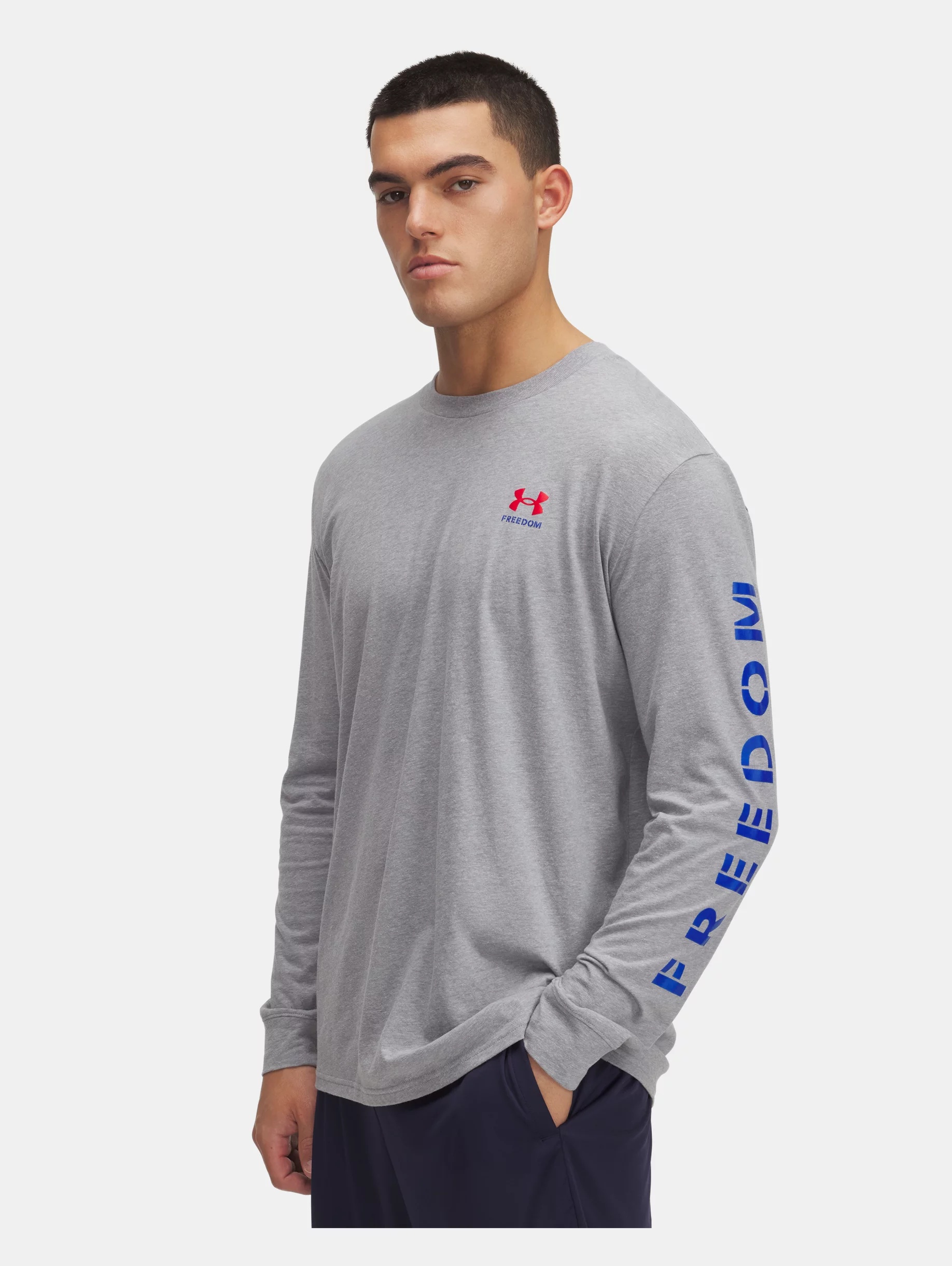 UA Freedom's goal is to support and inspire the brave men and women dedicated to protecting us, every day. This long sleeve graphic T is soft and comfortable with a classic flag graphic. Product Details - Super-soft, cotton-blend fabric provides all-day comfort - Ribbed collar Size & Fit - Fuller cut for complete comfort. Space & Care - Style #: 6007922 - 60% Cotton/40% Polyester - Imported