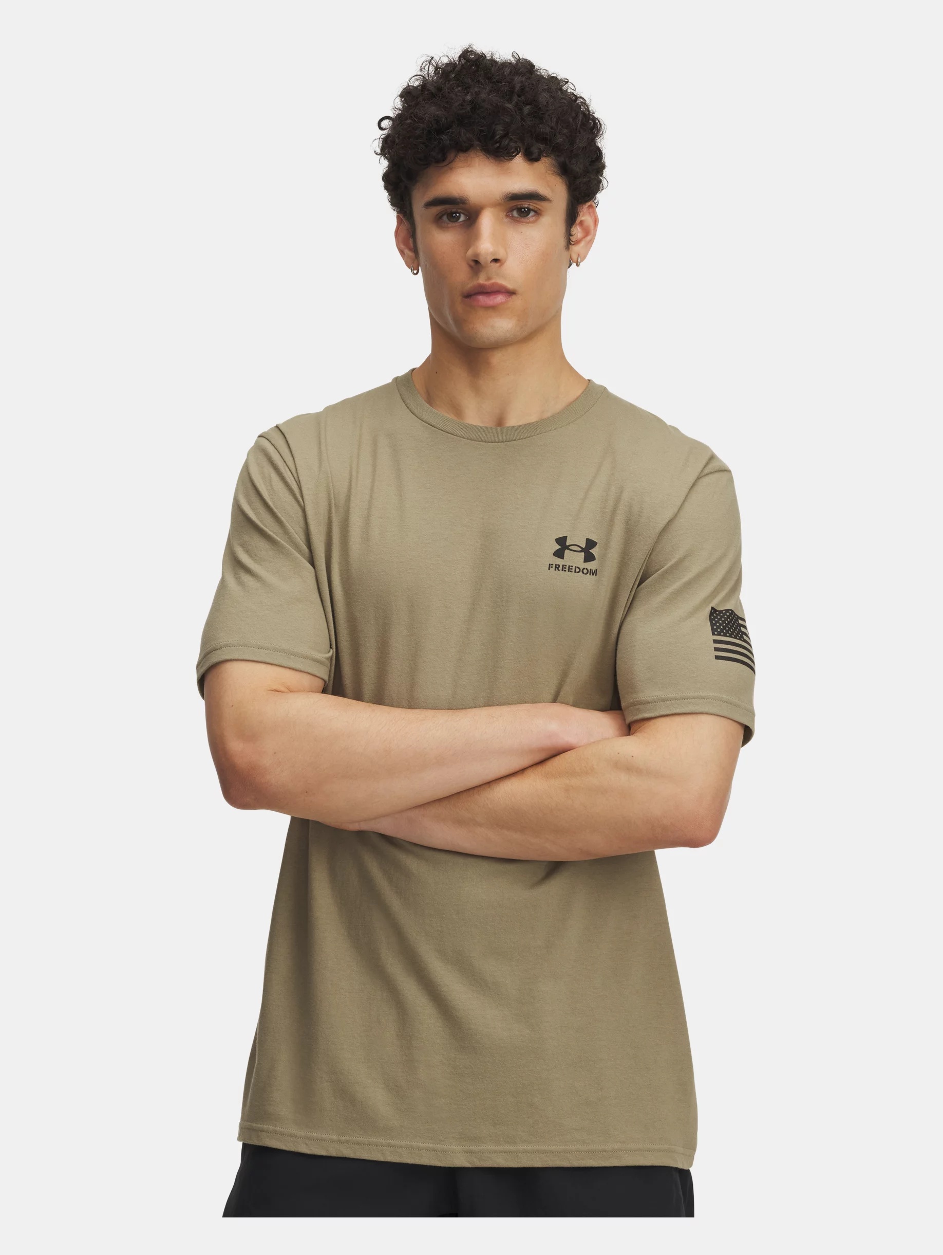 UA Freedom's goal is to support and inspire the brave men and women dedicated to protecting us, every day. This graphic T is soft and comfortable with a classic flag graphic. Product Details - Super-soft, cotton-blend fabric provides all-day comfort - Ribbed collar Size & Fit - Fuller cut for complete comfort. Space & Care - Style #: 6004096 - 60% Cotton/40% Polyester - Imported