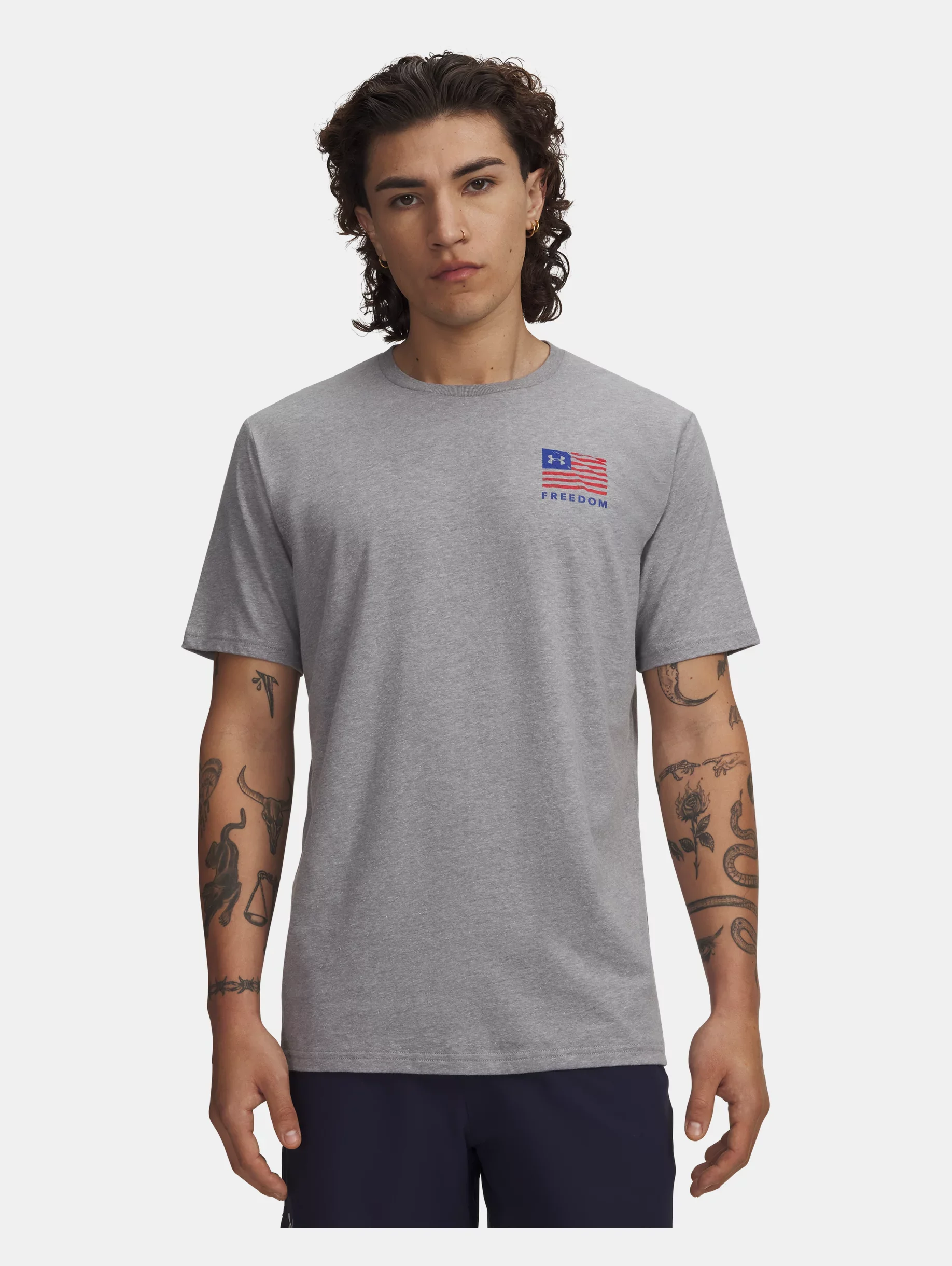 UA Freedom's goal is to support and inspire the brave men and women dedicated to protecting us, every day. This graphic T is soft and comfortable with vintage-inspired graphics. Product Details - Super-soft, cotton-blend fabric provides all-day comfort - Ribbed collar Size & Fit - Fuller cut for complete comfort. Space & Care - Style #: 6009149 - 60% Cotton/40% Polyester - Imported