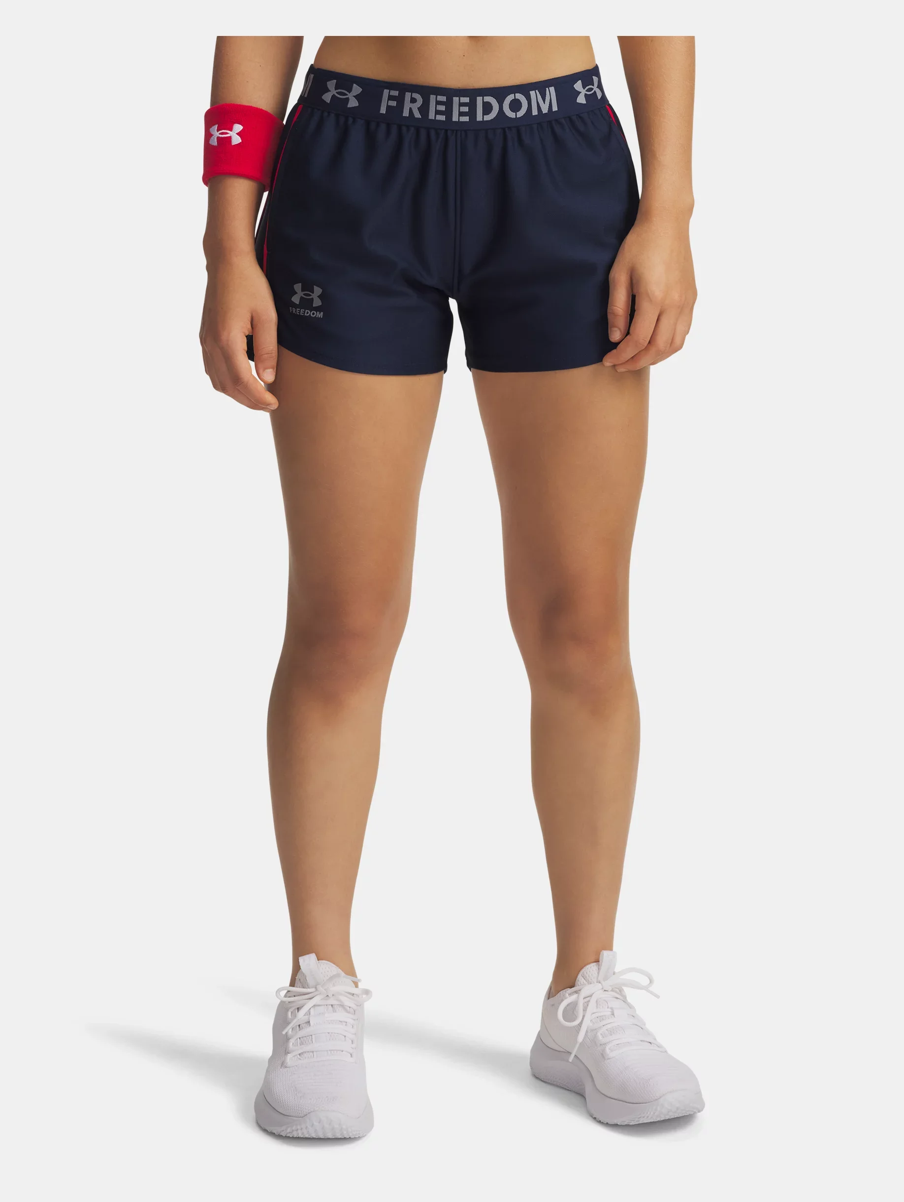 UA Freedom's goal is to support and inspire the brave men and women dedicated to protecting us, every day. These shorts are light, comfortable, and shaped to move with you. Product Details - Soft, lightweight knit fabric delivers superior comfort & breathability - Material wicks sweat & dries really fast - Side panel with color-pop piping detail - Low-rise, exposed elastic waistband with updated wordmark print - Open hand pockets - Shaped hem for a more flattering fit & better range of motion - Main body fabric contains at least 90% recycled polyester, excluding trims & embellishments Size & Fit - Fuller cut for complete comfort. Space & Care - Style #: 1389777 - Inseam: 3" - Pockets: Yes - 100% Polyester - Imported