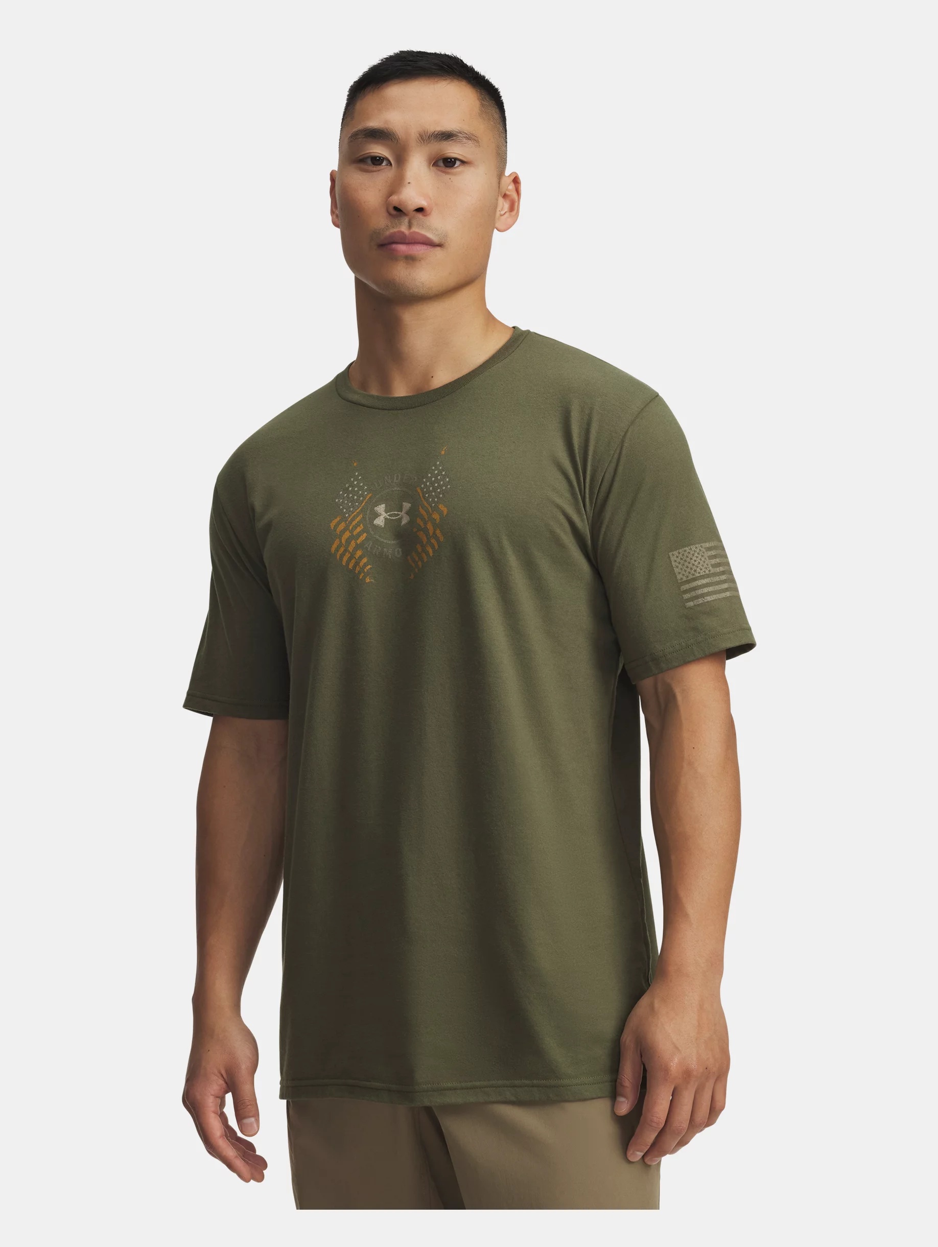 UA Freedom's goal is to support and inspire the brave men and women dedicated to protecting us, every day. This graphic T is soft and comfortable with vintage-inspired graphics. Product Details - Super-soft, cotton-blend fabric provides all-day comfort - Ribbed collar Size & Fit - Fuller cut for complete comfort. Space & Care - Style #: 6004100 - 60% Cotton/40% Polyester - Imported