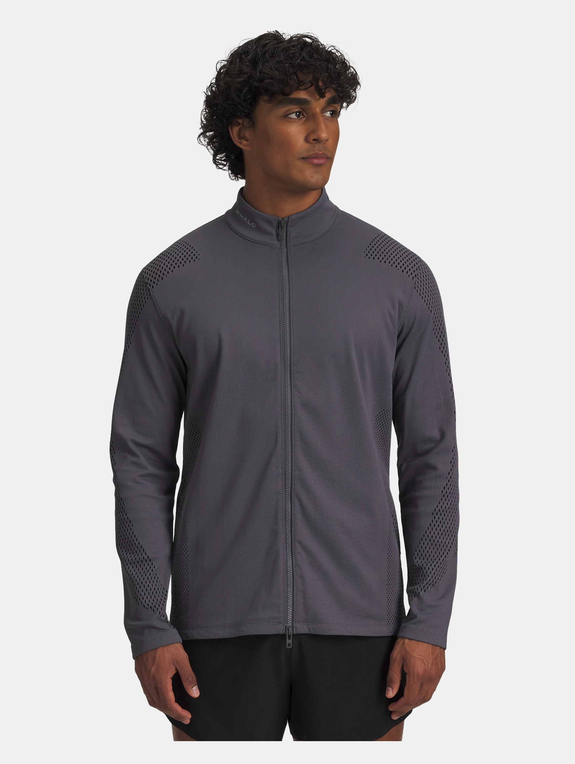 The Halo State:where form and function fall into lock step. Our new collection of gear is made in perfect synergy. This full zip is crazy breathable so you stay light and focused. Product Details - Sport Activity Recommendation: To/from training activities - Weather Conditions: Warm temperatures - Warp knit, jacquard mesh material is lightweight & ultra-breathable - Body-mapped, open hole perforation for ventilation where you need it most - Invisible zip hand pockets Size & Fit - Streamlined fit that's not too tight or too loose. Space & Care - Style #: 6007449 - Reflective logos - 89% Polyester/11% Elastane - Imported - Garment should be washed & dried fully zipped & turned inside out - Machine wash cold with like colors - Do not use softeners - Use only non-chlorine bleach when needed - Tumble dry low - Do not iron - Do not dry clean