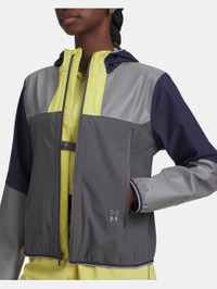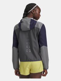 The Halo State:where form and function fall into lock step. Our new collection of gear is made in perfect synergy. A waterproof running jacket engineered to keep you dry and light for miles. Product Details - Sport Activity Recommendation: Road running - Weather Conditions: Windy, light rain - UA Storm technology repels water without sacrificing breathability - Bonded, 2.5-layer waterproof fabric with sealed seams is lightweight & super-durable - Bonded brim hood for no-bounce run - Oversized front zip pockets - Locker loop on center back for easy hang up - Reflective panels & logos for ultra visibility Size & Fit - Fuller cut for complete comfort. Space & Care - Style #: 6007040 - 57% Nylon/24% Polyester/19% Elastane - Imported - Do not wash - Do not bleach - Do not tumble dry - Do not iron - Do not dry clean