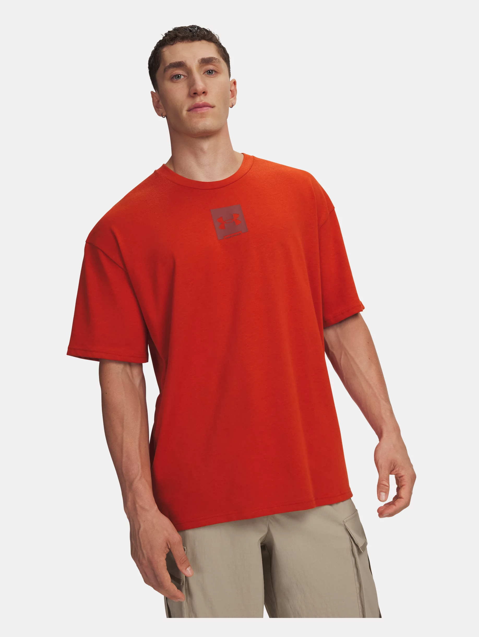 Everyone makes graphic Ts...but Under Armour makes them better.This heavyweight short sleeve with box logo has a more substantial feel but is still super-soft and comfortable. Product Details - Heavyweight, soft cotton-blend fabric provides all-day comfort - Ribbed collar - Drop hem shoulder for an oversized fit & feel Size & Fit - Fuller cut for complete comfort. Space & Care - Style #: 1386803 - 60% Cotton/40% Polyester - Imported - Use only non-chlorine bleach when needed - HEADS UP! Designed to fit oversized—if you prefer a more classic fit we recommend sizing down - Tumble dry low - Machine wash garment inside out on cold with like colors - Do not iron - Do not use softeners - Do not dry clean