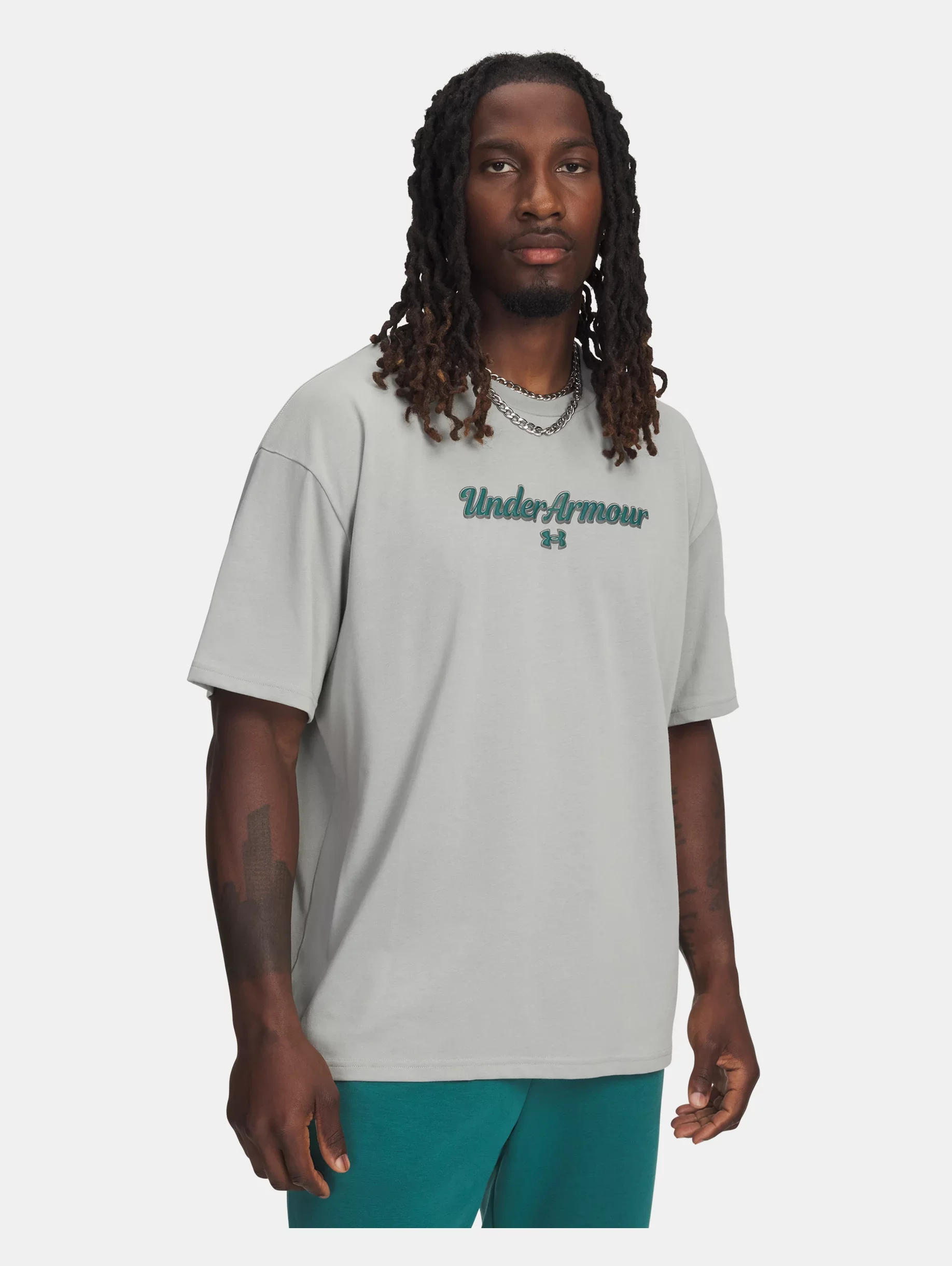 Everyone makes graphic Ts...but Under Armour makes them better.This heavyweight short sleeve with wordmark logo has a more substantial feel but is still super-soft and comfortable. Product Details - Heavyweight, soft cotton-blend fabric provides all-day comfort - Ribbed collar Size & Fit - Fuller cut for complete comfort. Space & Care - Style #: 6009266 - 60% Cotton/40% Polyester - Imported