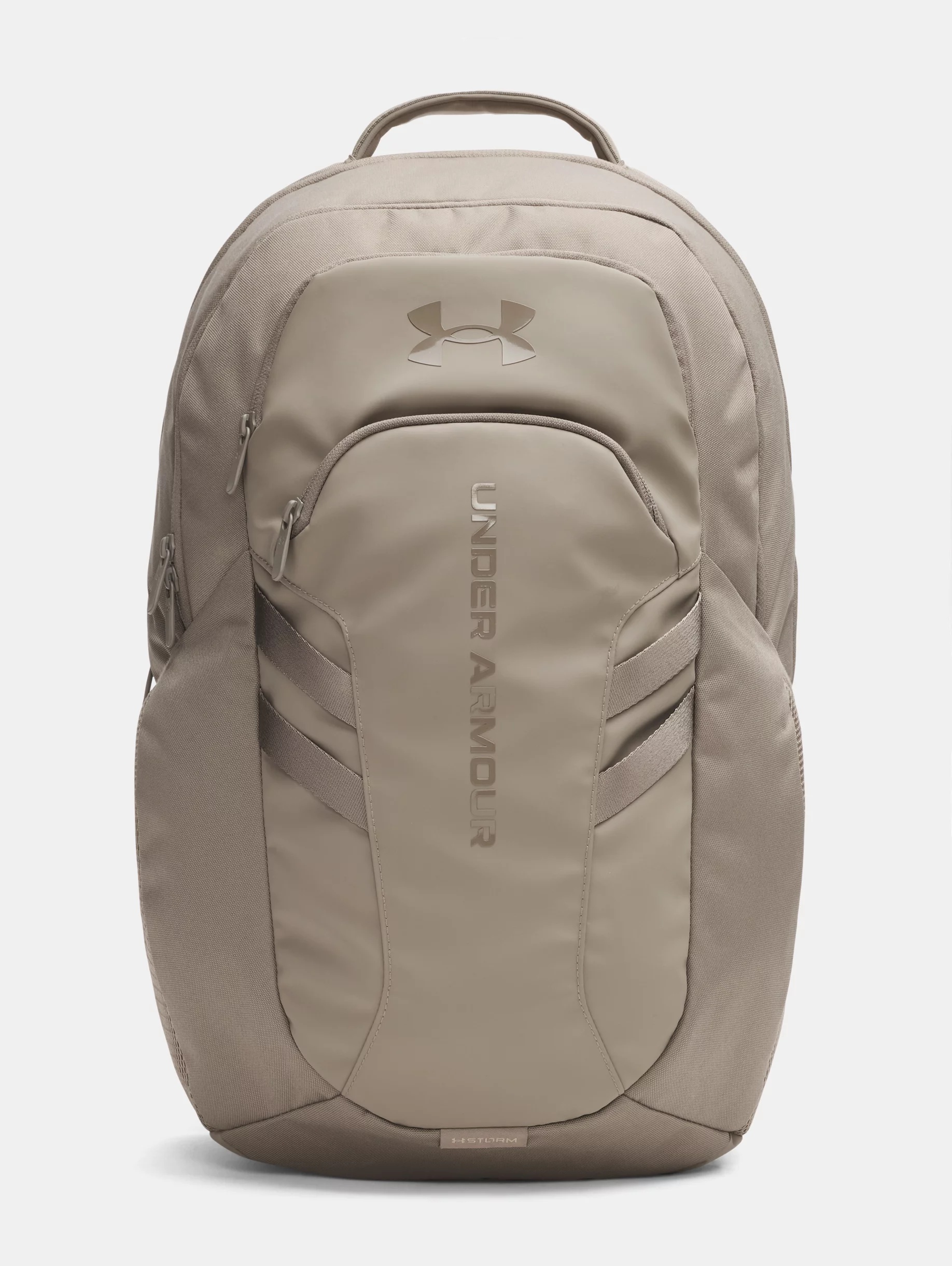 The backpack for whatever you want to throw at it—all the pockets you need, in a comfortable feel and carrying options that make this the first thing you grab on your way out. Product Details - Water-resistant UA Storm technology keeps your essentials dry - LEVELED™ strap system guides you to assure straps are adjusted evenly for balanced weight distribution - Soft-to-the-touch top coat on material for added durability - Soft-lined laptop sleeve—holds up to 16" MacBook Pro® or similarly sized laptop - Secondary compartment can be dual-purposed as a shoe/laundry pocket - Secure zip front pockets for essential item storage & side water bottle pocket that fits 32oz bottle - Adjustable, removable UA Strap Clip™ on shoulder to prevent duffle bag from falling off when carrying both - Strap clip works best when sternum clip is fastened Size & Fit - One Size Fits Most Space & Care - Style #: 1384671 - Molle webbing for additional attachment points - Dimensions When Full: 6.3"W x 20.1"H x 12.6"L - Volume: 31 L - 88% Polyester/12% Polyurethane - Imported