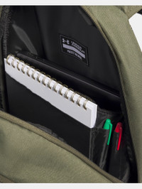 The backpack for whatever you want to throw at it—all the pockets you need, in a comfortable feel and carrying options that make this the first thing you grab on your way out. Product Details - Water-resistant UA Storm technology keeps your essentials dry - LEVELED™ strap system guides you to assure straps are adjusted evenly for balanced weight distribution - Soft-to-the-touch top coat on material for added durability - Soft-lined laptop sleeve—holds up to 16" MacBook Pro® or similarly sized laptop - Secondary compartment can be dual-purposed as a shoe/laundry pocket - Secure zip front pockets for essential item storage & side water bottle pocket that fits 32oz bottle - Adjustable, removable UA Strap Clip™ on shoulder to prevent duffle bag from falling off when carrying both - Strap clip works best when sternum clip is fastened Size & Fit - One Size Fits Most Space & Care - Style #: 1384671 - Molle webbing for additional attachment points - Dimensions When Full: 6.3"W x 20.1"H x 12.6"L - Volume: 31 L - 88% Polyester/12% Polyurethane - Imported