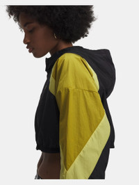 Every athlete needs a classic, heritage-inspired track jacket.It's made from lightweight, durable woven fabric with crinkle texture for a throwback look and feel with a cropped fit. Product Details - UA Storm technology repels water without sacrificing breathability - Woven fabric with all-over crinkle texture is lightweight & durable - Encased elastic cuffs & bottom hem - Raglan sleeves - Cropped body length Size & Fit - Fuller cut for complete comfort. Space & Care - Style #: 6005101 - 100% Nylon - Imported
