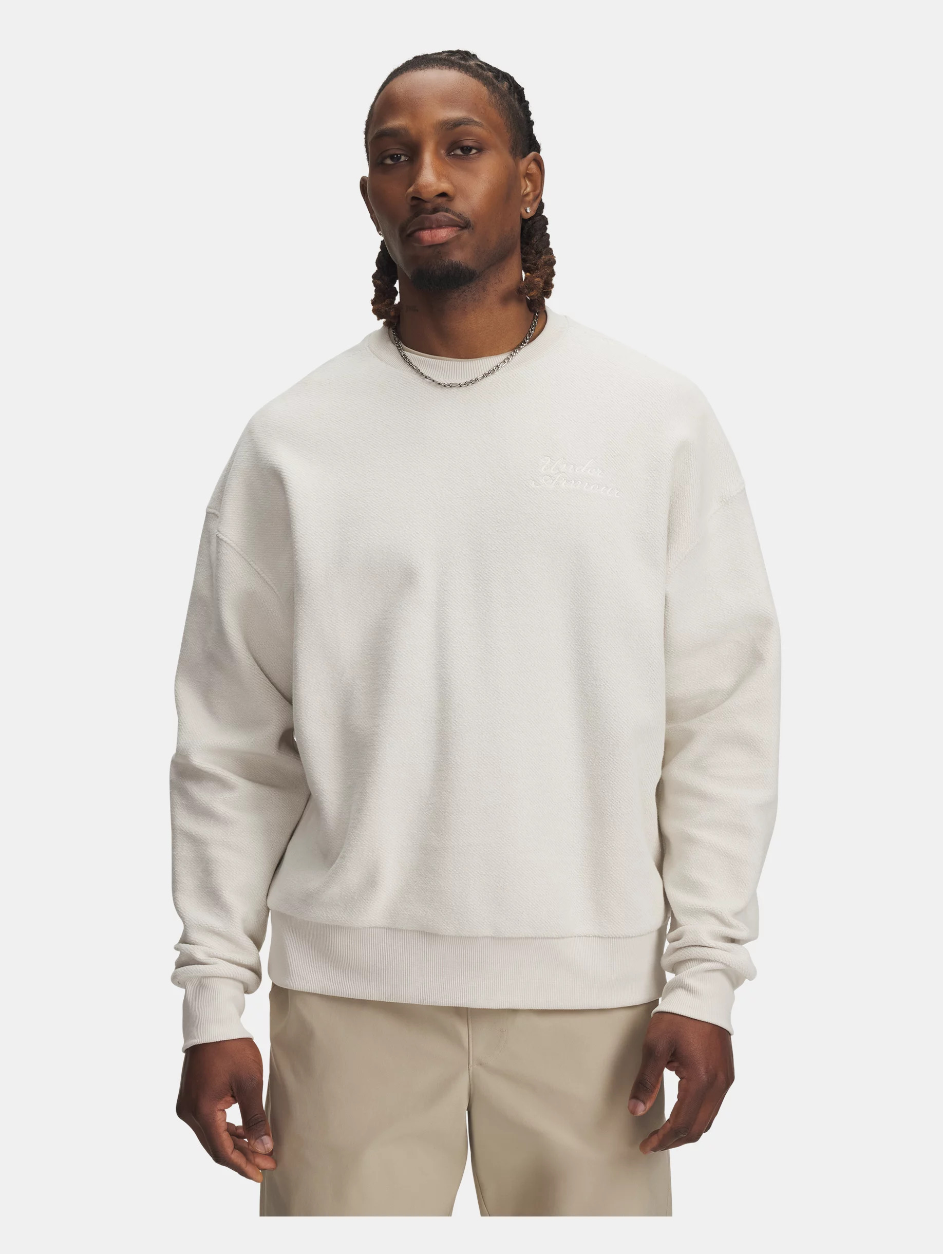 This terry crew has the soft feel of fleece, but without the extra heat of brushed fleece. That makes it perfect for cool Summer nights or early morning training. Product Details - Cotton Terry fabric is super-soft & comfortable with cozy exterior finish & a smooth inside - 4-way stretch material moves better in every direction - Ribbed collar, cuffs & bottom hem - Drop hem shoulder Size & Fit - Fuller cut for complete comfort. Space & Care - Style #: 6003942 - Embroidered logo - 100% Cotton - Imported