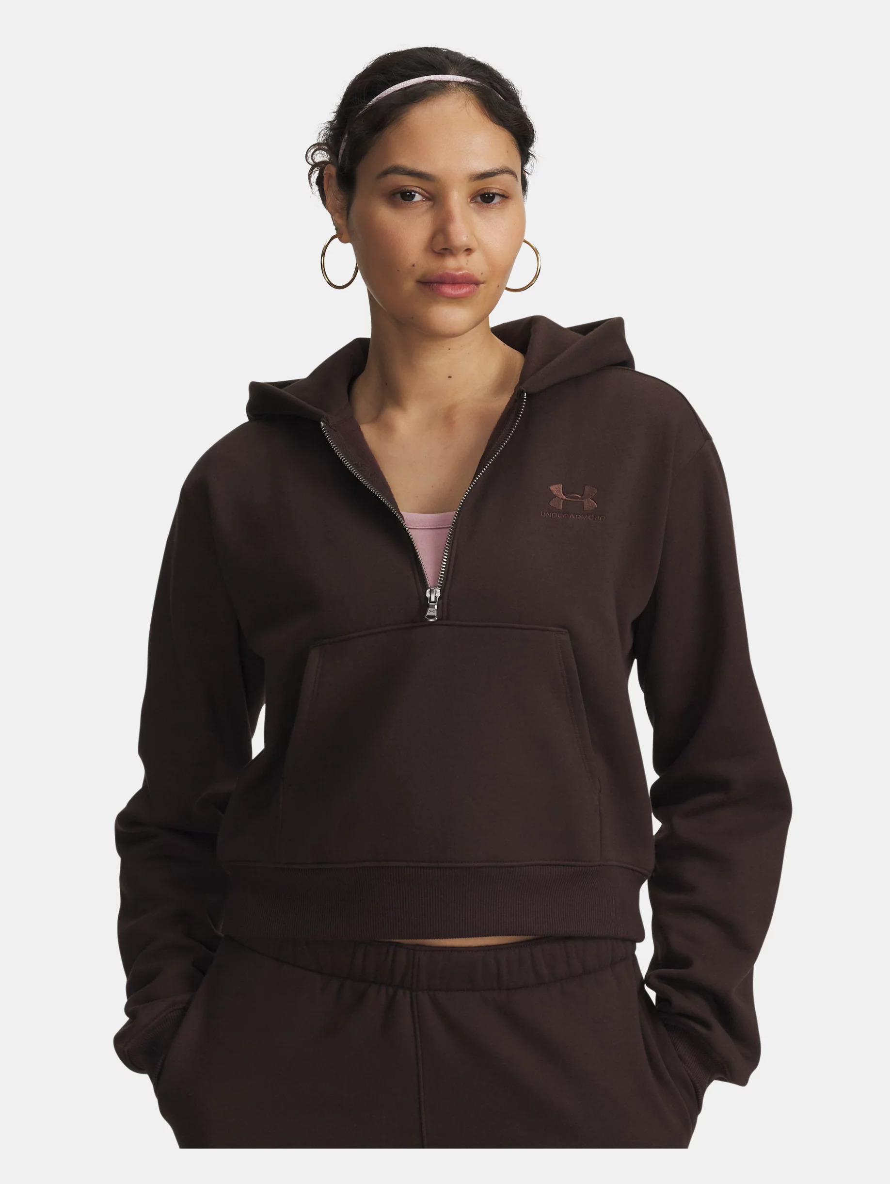 UA Icon Fleece has the feel of your favorite old school fleece with a clean, oversized fit that looks just as good with gym gear as it does with street clothes. Product Details - Ultra-soft, mid-weight fleece with a smooth outer layer & a warm, soft inner layer - Front kangaroo pocket - Generous ½ Zip front makes for easy layering - Ribbed cuffs & bottom hem - Drop hem shoulder - Main body fabric engineered to reduce fiber shedding leveraging Under Armour's Fiber Shed Test Method Size & Fit - Fuller cut for complete comfort. Space & Care - Style #: 6003824 - Embroidered logo - 59% Cotton/41% Polyester - Imported