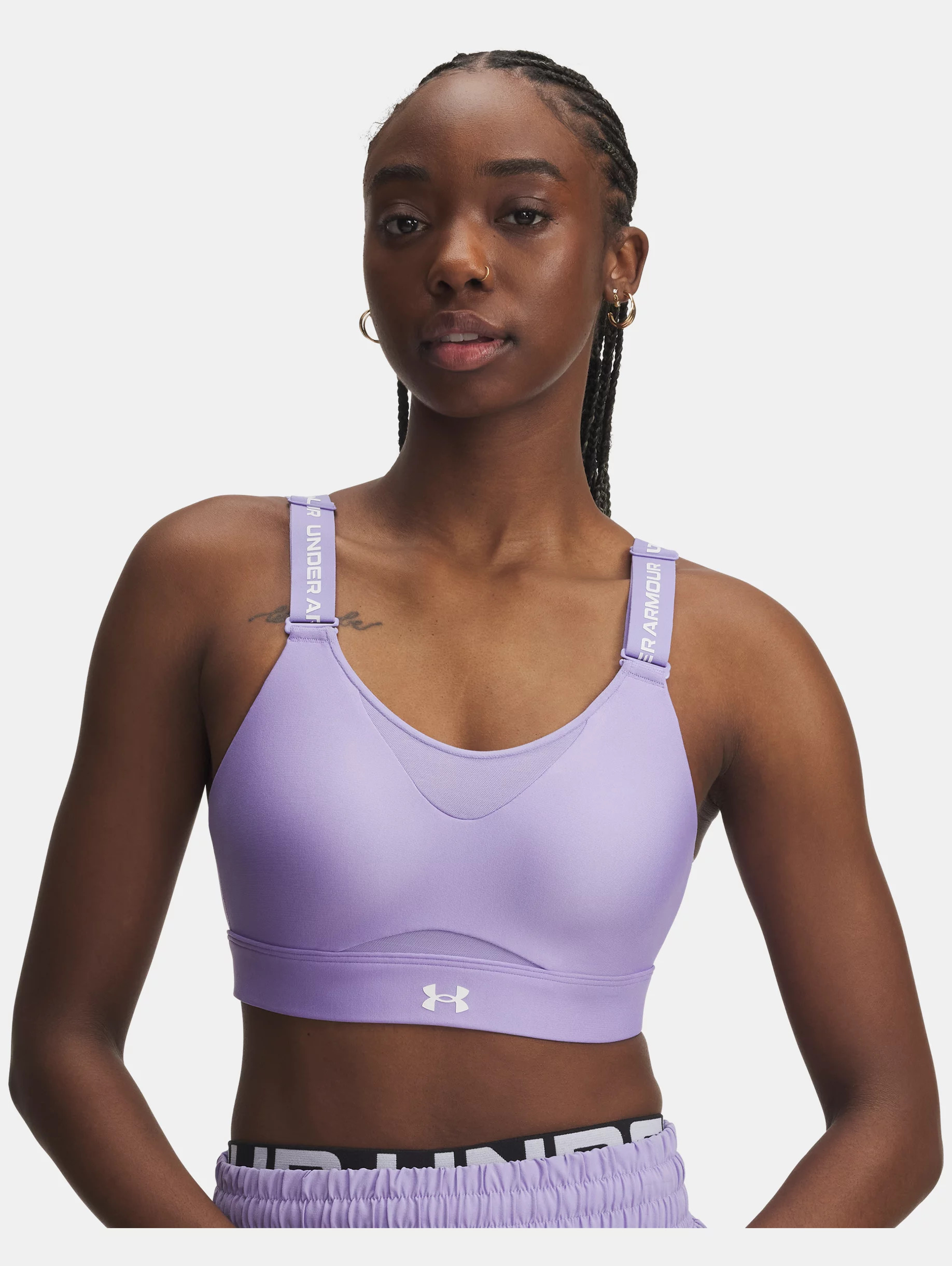 With a unique support tech that syncs with your every move plus ultra-light hollow foam padding, UA Infinity Bra is engineered for limitless support. Product Details - Delivers strategic support, tailored for high-support activities like running, court sports & field sports - New injection-molded pad with strategic pattern for a more aerodynamic fit & a lighter feel - Front mesh panel for added breathability - Smooth, sweat-wicking band has easy hook & eye closure for easy on & off - Front adjustable, convertible straps can be worn straight or crossback - Material wicks sweat & dries really fast - Odor control technology minimizes odor - UPDATED SIZING: We revamped our bra sizing so you can find a fit that feels custom to your unique shape—check the size chart to find your perfect match Size & Fit - Streamlined fit that's not too tight or too loose. Space & Care - Style #: 1384112 - 87% Polyester/13% Elastane - Imported - Machine wash cold with like colors - Do not bleach - Line dry - Do not iron - Do not dry clean