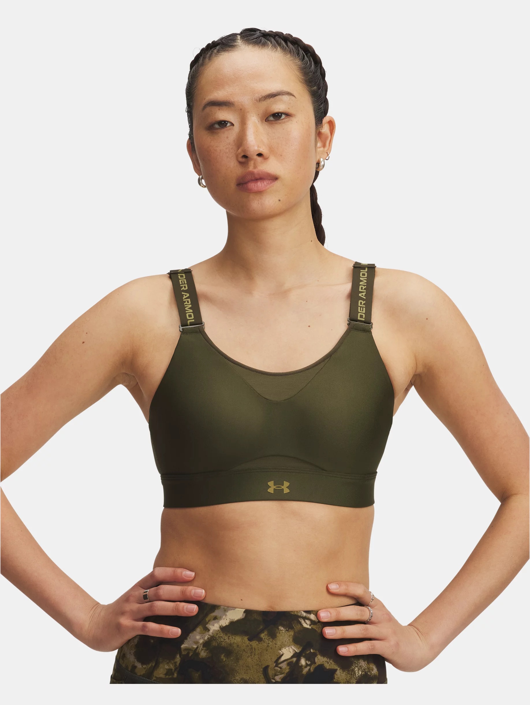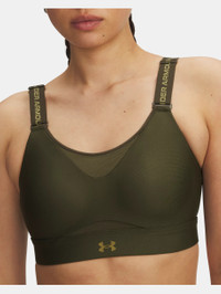 With a unique support tech that syncs with your every move plus ultra-light hollow foam padding, UA Infinity Bra is engineered for limitless support. Product Details - Delivers strategic support, tailored for high-support activities like running, court sports & field sports - New injection-molded pad with strategic pattern for a more aerodynamic fit & a lighter feel - Front mesh panel for added breathability - Smooth, sweat-wicking band has easy hook & eye closure for easy on & off - Front adjustable, convertible straps can be worn straight or crossback - Material wicks sweat & dries really fast - Odor control technology minimizes odor - UPDATED SIZING: We revamped our bra sizing so you can find a fit that feels custom to your unique shape—check the size chart to find your perfect match Size & Fit - Streamlined fit that’s not too tight or too loose. Space & Care - Style #: 1384112 - 87% Polyester/13% Elastane - Imported - Machine wash cold with like colors - Do not bleach - Line dry - Do not iron - Do not dry clean