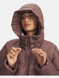 With virtually weightless cold-weather tech and a soft, cozy outer, UA Limitless Down doesn't look like a technical puffer—it just performs like one. Product Details - UA Storm technology repels water without sacrificing breathability - 700-fill Allied duck down insulation provides extreme warmth & is responsibly sourced & traceable via tag - ColdGear® Infrared lining uses a soft, thermo-conductive coating to absorb & retain your body heat - Cozy fleece-lined collar for added warmth & comfort - Removable, adjustable hood & secure zip hand pockets & interior chest pocket - Soft, ColdGear® knit interior cuffs for added comfort & interior bottom hem adjusts for a secure fit - Main body fabric contains at least 90% recycled polyester, excluding trims & embellishments - Uses a fluorine-free water repellent treatment Size & Fit - Fuller cut for complete comfort. Space & Care - Style #: 6001001 - 100% Polyester - Imported