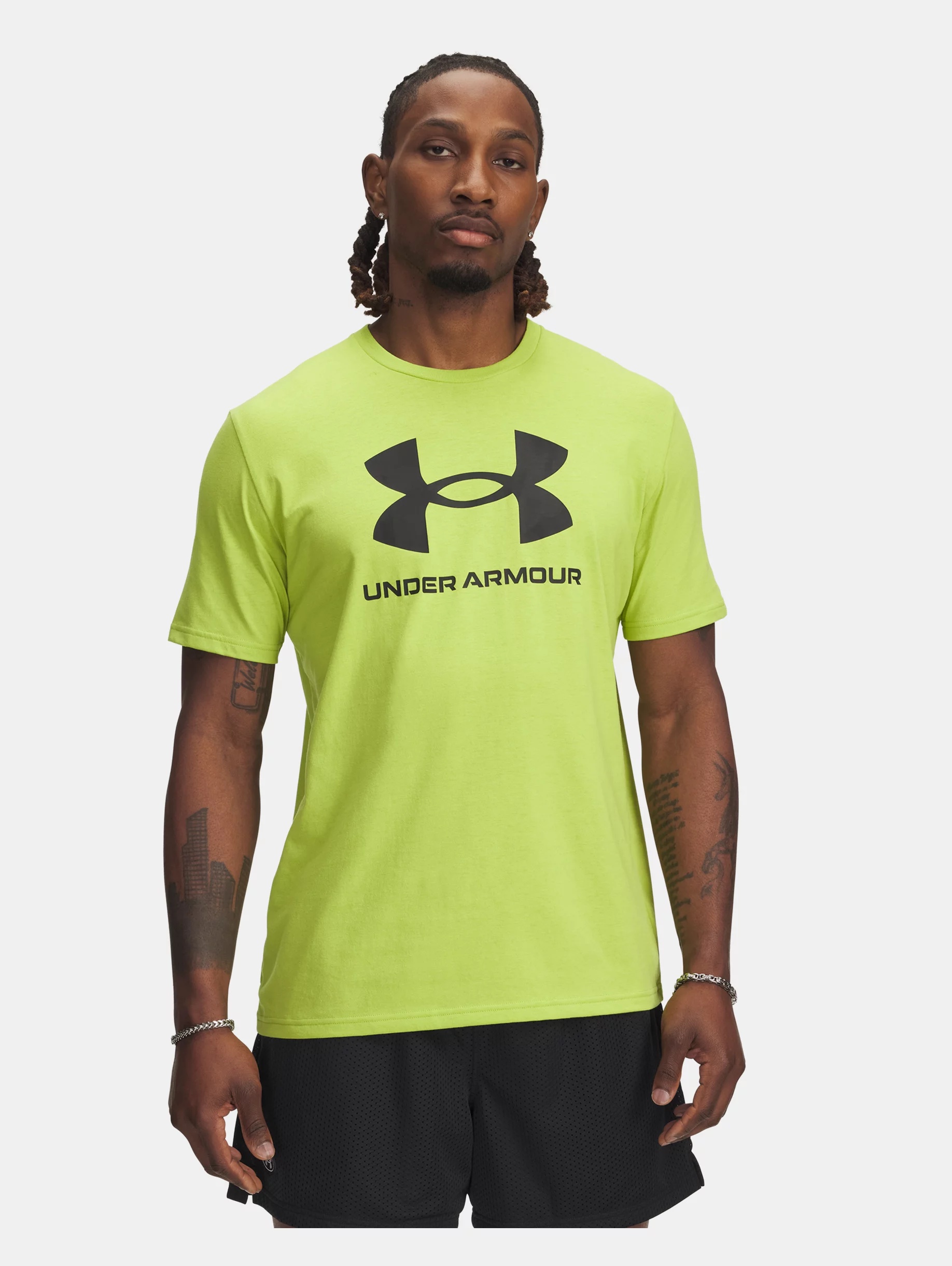 Everyone makes graphic Ts...but Under Armour makes them better. The fabric we use is light, soft, and quick-drying. Product Details - Super-soft, cotton-blend fabric provides all-day comfort - Ribbed collar - Main body fabric contains at least 40% recycled polyester, excluding trims & embellishments Size & Fit - Fuller cut for complete comfort. Space & Care - Style #: 1382911 - 60% Cotton/40% Polyester - Imported - Wash garment inside out - Machine wash cold with like colors - Use only non-chlorine bleach when needed - Tumble dry low - Do not iron - Do not use softeners - Do not dry clean