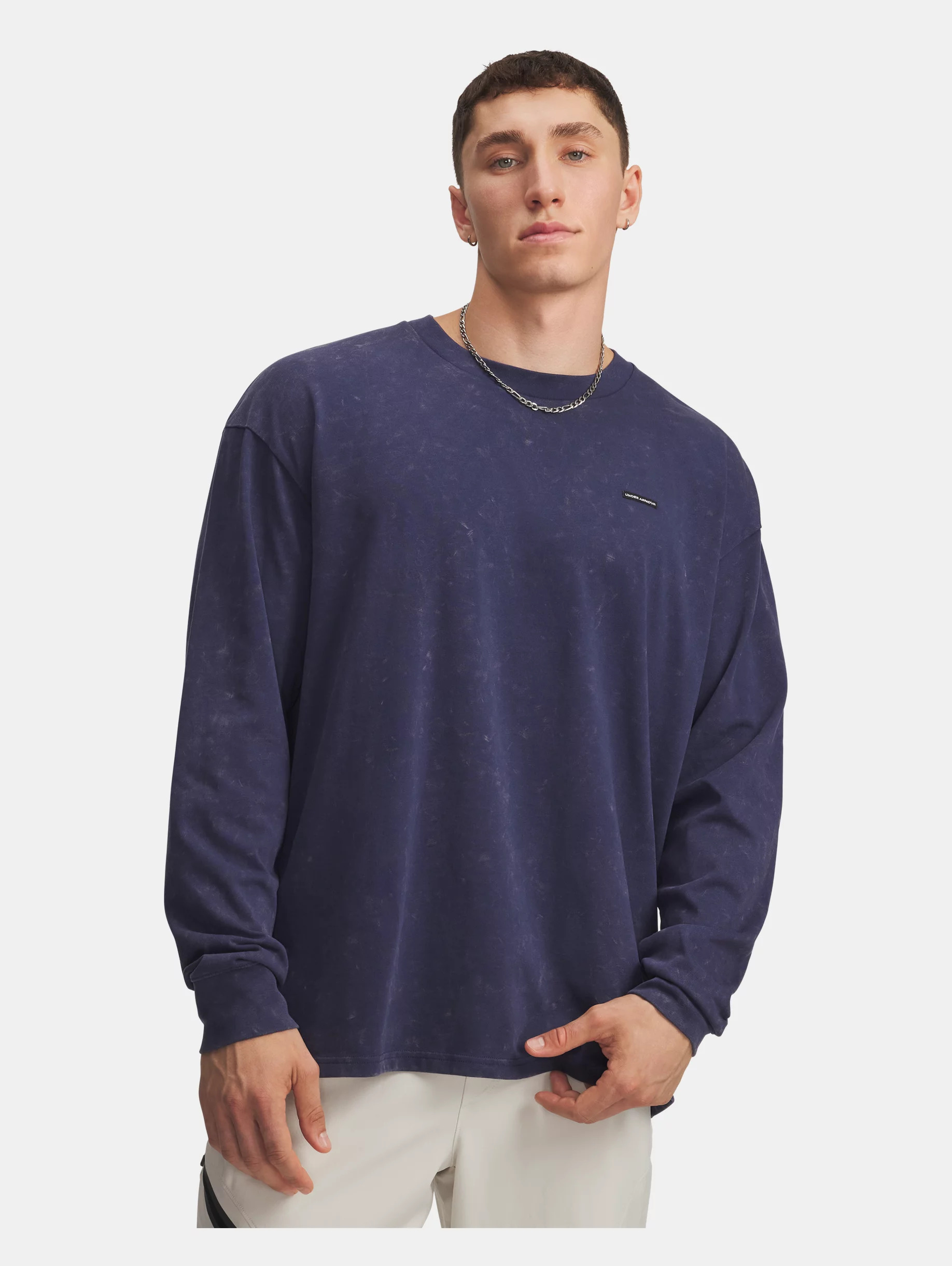 Everyone makes graphic Ts...but Under Armour makes them better.This heavyweight long sleeve has a more substantial feel but is still super-soft and comfortable with an all-over vintage wash look and oversized fit. Product Details - Heavyweight, soft cotton-blend fabric provides all-day comfort - Ribbed collar & cuffs - Drop hem shoulder for an oversized fit & feel - Main body fabric contains at least 40% recycled polyester, excluding trims & embellishments Size & Fit - Fuller cut for complete comfort. Space & Care - Style #: 6007948 - 60% Cotton/40% Polyester - Imported