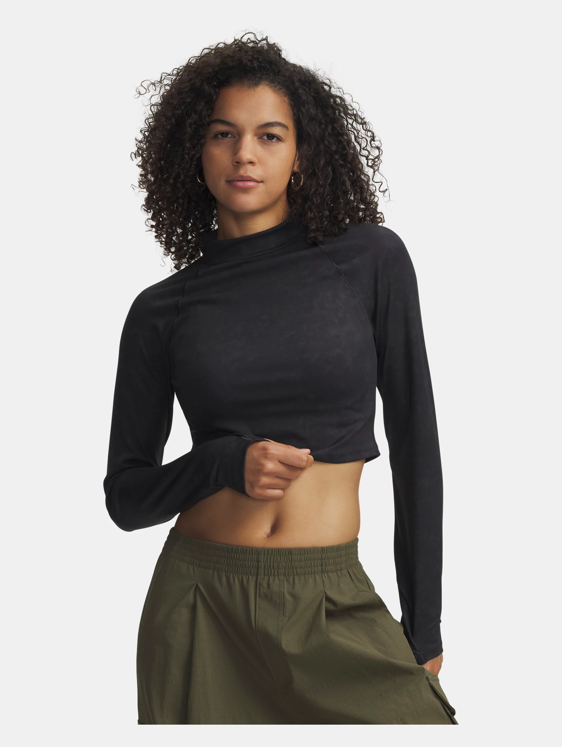 This top is built to flatter, with a cropped, body-hugging cut and super-soft fabric with a suede-like look. Product Details - Super-soft & stretchy performance knit with printed suede-effect visual delivers support & lasting comfort - Material wicks sweat & dries really fast - 4-way stretch material moves better in every direction - Short mock neck collar for added coverage - Built-in thumbholes help keep sleeves in place - Raglan sleeves Size & Fit - Streamlined fit that's not too tight or too loose. Space & Care - Style #: 6007020 - 82% Polyester/18% Elastane - Imported