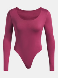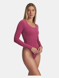 This specially engineered fabric delivers a unique type of softness that can still wick sweat like a champ. It's lightweight, it's breathable, and it's ready to work. Product Details - Super-soft, brushed knit fabric is breathable & comfortable - 4-way stretch material moves better in every direction - Scoop neckline - Thong back ensures a seamless look - Soft gusset with low-profile snap closure Size & Fit - Streamlined fit that's not too tight or too loose. Space & Care - Style #: 6005918 - 89% Polyester/11% Elastane - Imported