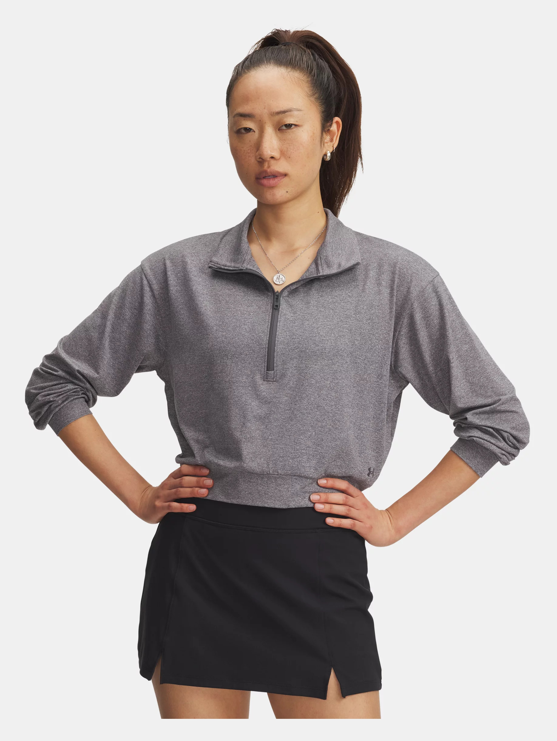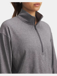 This specially engineered fabric delivers a unique type of softness that can still wick sweat like a champ. It's lightweight, it's breathable, and it's ready to work. Product Details - Super-soft, 2-color jersey knit fabric is stretchy, comfortable & moves with you - Material wicks sweat & dries really fast - 4-way stretch material moves better in every direction - Generous ½ Zip front makes for easy layering - Drop hem shoulder for a relaxed fit & feel Size & Fit - Fuller cut for complete comfort. Space & Care - Style #: 6004159 - 90% Polyester/10% Elastane - Imported