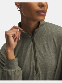 This specially engineered fabric delivers a unique type of softness that can still wick sweat like a champ. It's lightweight, it's breathable, and it's ready to work. Product Details - Super-soft, 2-color jersey knit fabric is stretchy, comfortable & moves with you - Material wicks sweat & dries really fast - 4-way stretch material moves better in every direction - Generous ½ Zip front makes for easy layering - Drop hem shoulder for a relaxed fit & feel Size & Fit - Fuller cut for complete comfort. Space & Care - Style #: 6004159 - 90% Polyester/10% Elastane - Imported