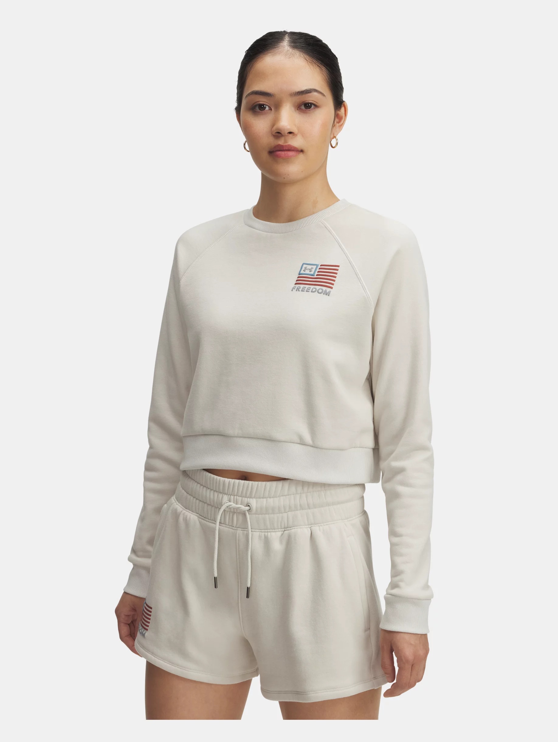 UA Freedom's goal is to support and inspire the brave men and women dedicated to protecting us, every day. Product Details - Ultra-soft cotton-blend fleece with brushed inside for extra warmth - Ribbed collar, cuffs & bottom hem - Raglan sleeves - Main body fabric engineered to reduce fiber shedding leveraging Under Armour's Fiber Shed Test Method Size & Fit - Fuller cut for complete comfort. Space & Care - Style #: 1386362 - 56% Cotton/44% Polyester - Imported - Machine wash cold with like colors - Do not bleach - Tumble dry low - Do not iron - Do not use softeners - Do not dry clean