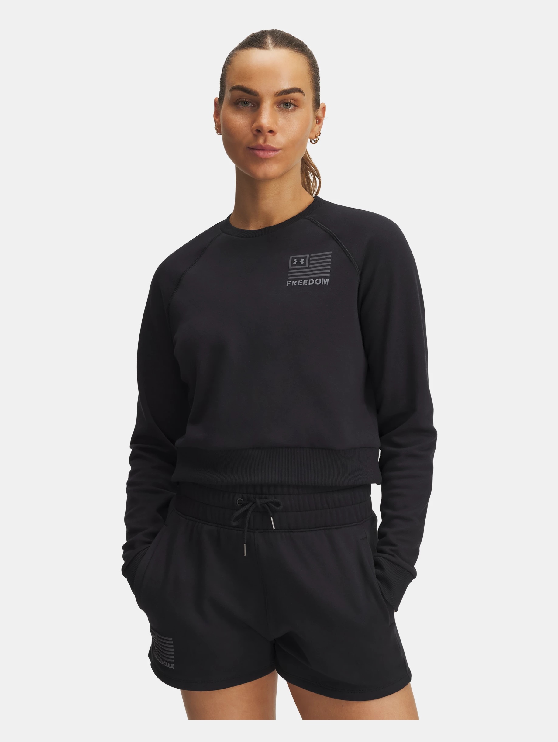 UA Freedom's goal is to support and inspire the brave men and women dedicated to protecting us, every day. Product Details - Ultra-soft cotton-blend fleece with brushed inside for extra warmth - Ribbed collar, cuffs & bottom hem - Raglan sleeves - Main body fabric engineered to reduce fiber shedding leveraging Under Armour's Fiber Shed Test Method Size & Fit - Fuller cut for complete comfort. Space & Care - Style #: 1386362 - 56% Cotton/44% Polyester - Imported - Machine wash cold with like colors - Do not bleach - Tumble dry low - Do not iron - Do not use softeners - Do not dry clean