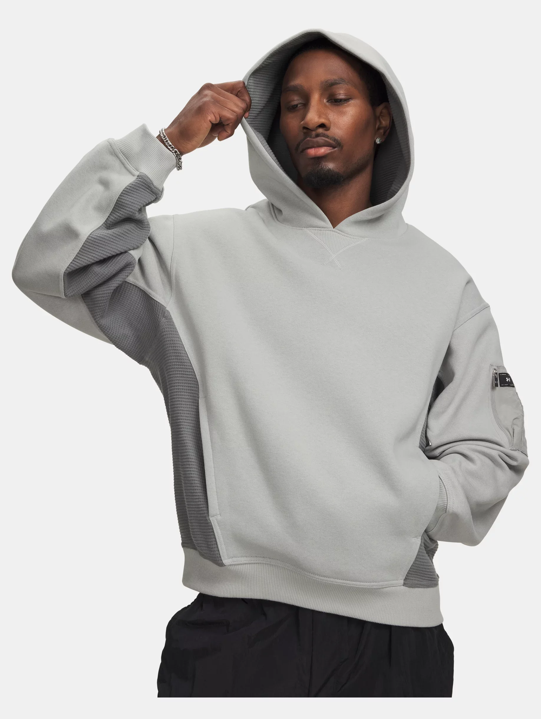 Product Details - Ultra-soft, heavyweight cotton-blend fleece with brushed inside for extra warmth - Waffle knit hood lining & panels for added texture & stretch - Secure zip pocket on left sleeve - Ribbed cuffs & bottom hem - Drop hem shoulder for a loose, relaxed fit Size & Fit - Fuller cut for complete comfort. Space & Care - Style #: 6010989 - Woven patch label above left cuff - 82% Cotton/18% Polyester - Imported