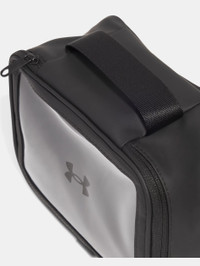 Built to store your make up and toiletries when you're traveling or on the go with an easy-to-clean material and carry handle. Product Details - Water-resistant UA Storm technology keeps your essentials dry - Clear, wipeable TPU front & back with soft PU material around the edges for added durability Size & Fit - One Size Fits Most Space & Care - Dimensions When Full: 8"W x 6"H x 4"D - Volume: 4 L