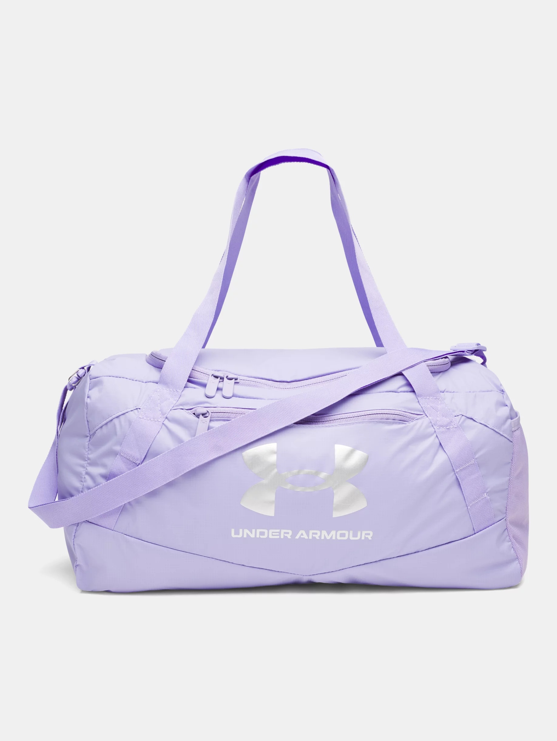 This duffle is built for those on the go.It's light, super-durable, not too big, and even packable into itself for easy storage when you aren't using it. Product Details - Water-repellent UA Storm technology keeps your essentials dry - Packable into center back zipper pocket - Zippered main compartment & side mesh slip pocket - Front zip pocket & molle webbing attachment points - Top grab handle also functions as adjustable shoulder strap Size & Fit - One Size Fits Most Space & Care - Style #: 6003779 - Dimensions When Full: 8.7"H x 8.9"W x 17.6"D - Volume: 25 L - Imported - 90% Nylon/10% Polyester