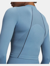 Nothing can hold you back in this long sleeve.Made seamless where you need it most so there's less rubbing—plus it's extra breathable with strategically-placed mesh where you sweat the most to help you stay cool and focused. Product Details - Super-soft, 2-color knit fabric with body-mapped textures that shape & flatter the body - Nearly sew-free design to eliminate chafing - 4-way stretch material moves better in every direction - Material wicks sweat & dries really fast - Ribbed collar Size & Fit - Streamlined fit that’s not too tight or too loose. Space & Care - Style #: 6000645 - 76% Nylon/18% Polyester/6% Elastane - Imported