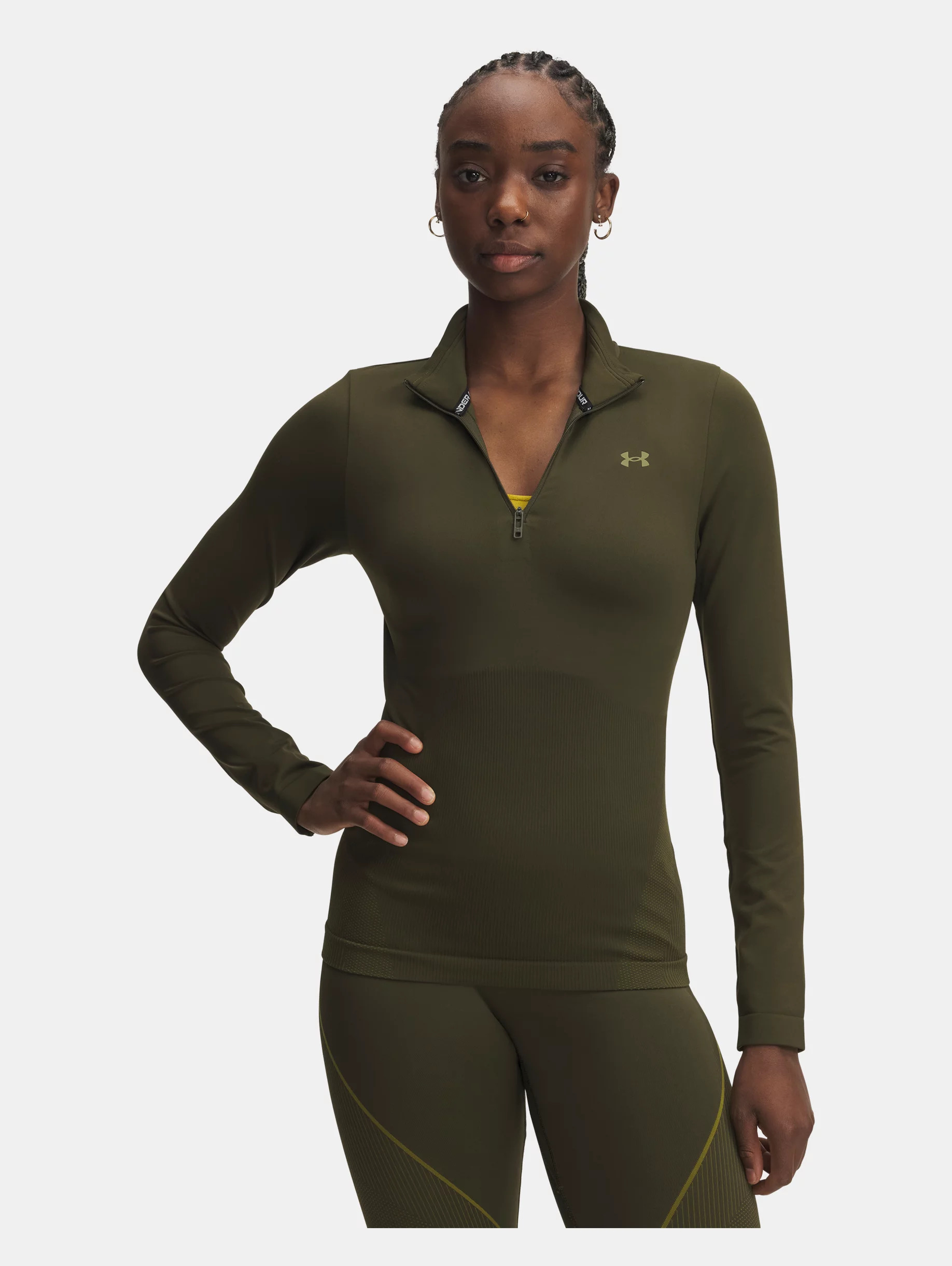 Nothing can hold you back in this ¼ zip.Made seamless where you need it most so there's less rubbing—plus it's extra breathable with strategically-placed mesh where you sweat the most to help you stay cool and focused. Product Details - Super-soft, 2-color knit fabric with body-mapped textures that shape & flatter the body - Nearly sew-free design to eliminate chafing - 4-way stretch material moves better in every direction - Material wicks sweat & dries really fast - ¼ Zip front makes for easy layering - Odor control technology minimizes odor Size & Fit - Streamlined fit that’s not too tight or too loose. Space & Care - Style #: 6000644 - 76% Nylon/18% Polyester/6% Elastane - Imported