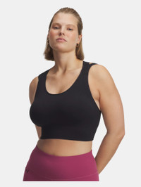 This bra gives you the right support for medium-impact activities. It has a longer cut and seamless fit for complete comfort. Product Details - Delivers strategic support, tailored for medium-support activities like cycling, weight training & boxing - Super-soft knit fabric with body-mapped textures that shape & flatter the body - Nearly sew-free design to eliminate chafing - Removable cups for enhanced shape & coverage - Double-layer strap design with back keyhole cutout for ventilation & easy on/off Size & Fit - Streamlined fit that’s not too tight or too loose. Space & Care - Style #: 6004000 - 95% Nylon/5% Elastane - Imported