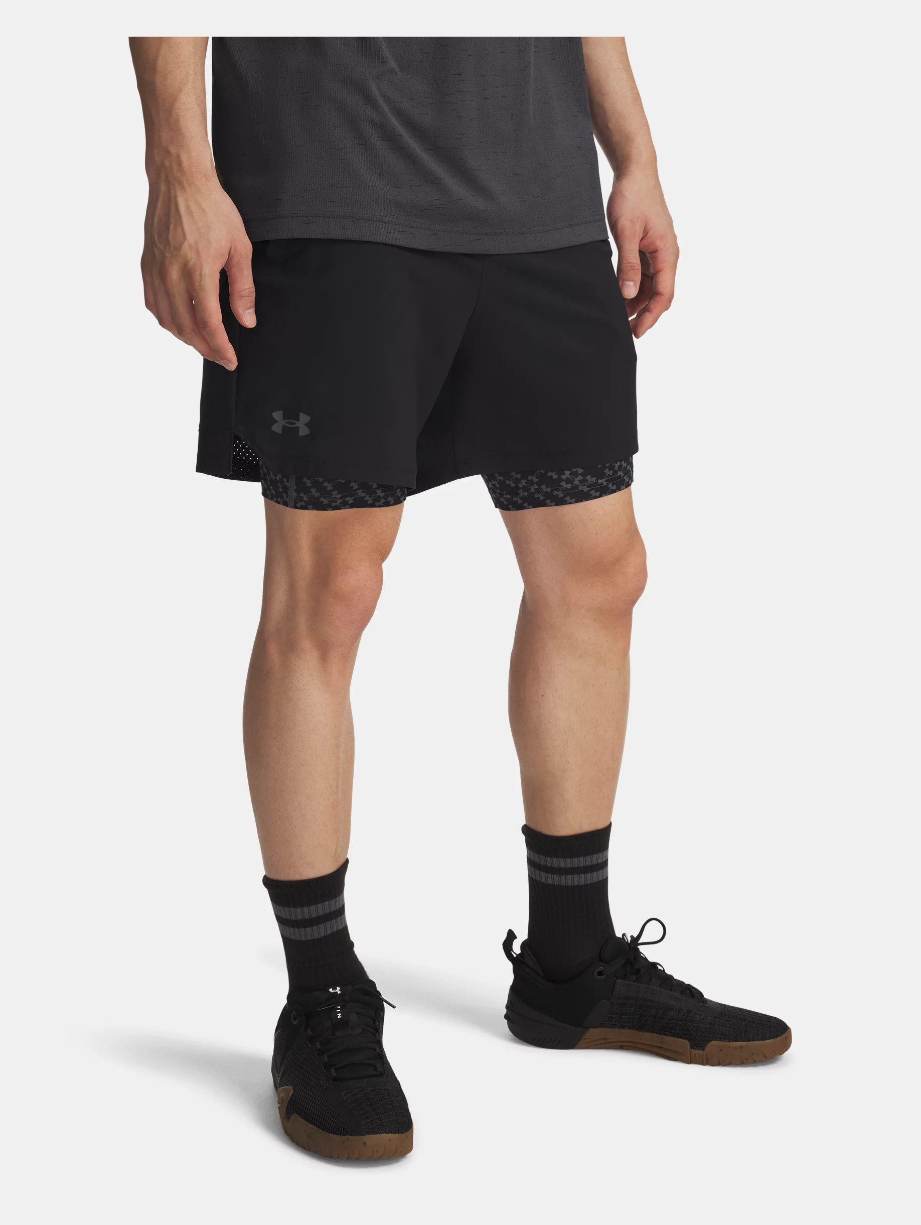 If it says UA Vanish in the name, that means it's one of our fastest-drying materials.These 2-in-1 shorts are ultralight, durable, breathable, and dry super-fast to keep you cool. Product Details - Ultra-lightweight, durable woven fabric is built for the most intense workouts - Built-in knit compression shorts for relentless coverage & support - Perforated woven panels on outer shorts for added ventilation - Material wicks sweat & dries really fast - 4-way stretch material moves better in every direction - Halfback exposed waistband with wordmark detail in the back & internal drawcord - Open hand pockets Size & Fit - Streamlined fit that’s not too tight or too loose. Space & Care - Style #: 6005120 - Inseam (outer shorts): 6" - Inner (liner shorts): 7" - Pockets: Yes - Outer shorts: 100% Polyester - Liner shorts: 84% Polyester/16% Elastane - Imported