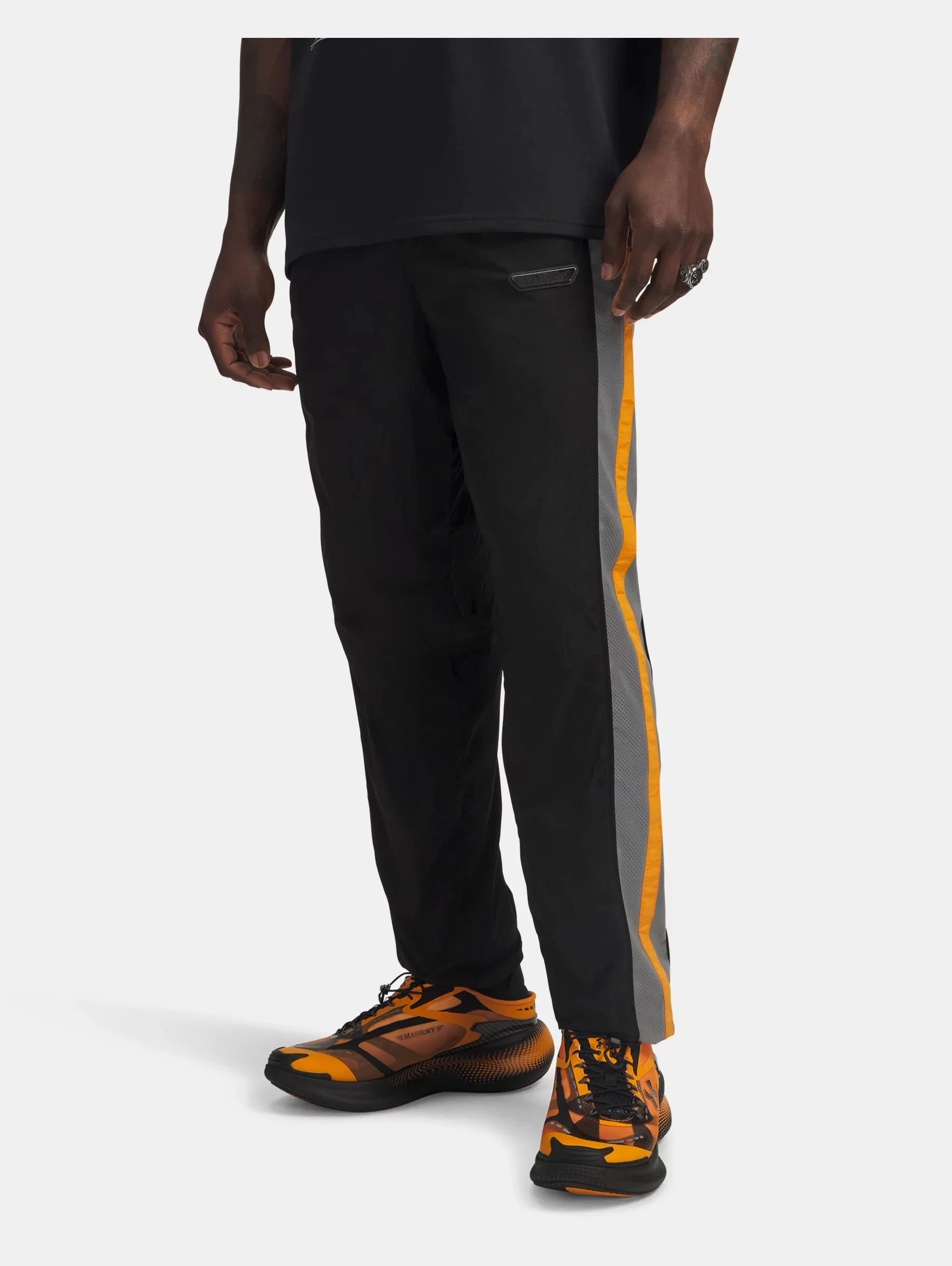 Luxury energy meets field-ready tech.Built in partnership with Mansory, these limited-edition track pants bring a clean, technical edge to your daily rotation. Product Details - UA Storm technology repels water without sacrificing breathability - Woven fabric with all-over sheen finish is lightweight & durable - Encased elastic waistband with internal drawcord - Open hand pockets & secure zip back pocket - Encased elastic cuffs Size & Fit - Fuller cut for complete comfort. Space & Care - Style #: 6009099 - Inseam: 32.5" - Pockets: Yes - 100% Polyester - Imported