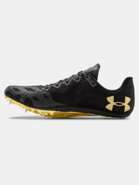 What's it do? Built specifically for going all out in the 400 and the 800, with a light, locked in fit, super-responsive toe-offs, and the UA HOVR™ cushioning you need to protect your feet from the qualifying rounds to the finals. Product DNA - Ideal for: finesse sprints, 400M / 800M - Lightweight, breathable embroidered upper gives you a locked-in fit & feel - Lightweight, structural forefoot film for added strength to maximize efficiency & power in propulsion - UA HOVR™ sockliner & dynamic Energy Web for comfortable landings, in-sole traction & responsive toe-offs - UA Micro G® high-rebound midsole helps eliminate impact & provide added energy return - Forefoot Pebax™ plate with 6 perimeter pins for smooth transition into toe-off & strength in propulsion - Lightweight, molded sharkskin element in the heel enhances traction off the blocks - Regular - Style #: 3021831 - 6-Pin Forefoot - ¼" pyramid spikes & ¾-length plate - Weight: 7oz / 198g - Imported