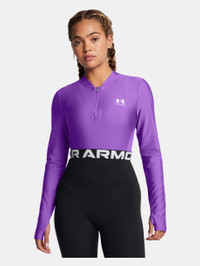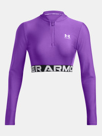 What's it do? Back in 1996, we invented the baselayer—and we've been perfecting it ever since. It took 37 prototypes and endless hours of testing to create the right light, tight layer that wicks sweat, dries fast, and keeps you cool. Product DNA - Our original HeatGear® fabric is super-light, breathable & dries fast - Material wicks sweat & dries really fast - 4-way stretch material moves better in every direction - Stretchy ribbed panels on sides & back & forward side seam shape the body for a flattering fit - Cropped body length & exposed elastic bottom band with wordmark detail - ¼ zip front makes for easy layering & on/off - Built-in thumbholes help keep sleeves in place - Odor control technology minimizes odor - Fitted: Streamlined fit that’s not too tight or too loose. - Style #: 1388692 - Body: 87% Polyester/13% Elastane - Rib Panels: 94% Polyester/6% Elastane - Imported