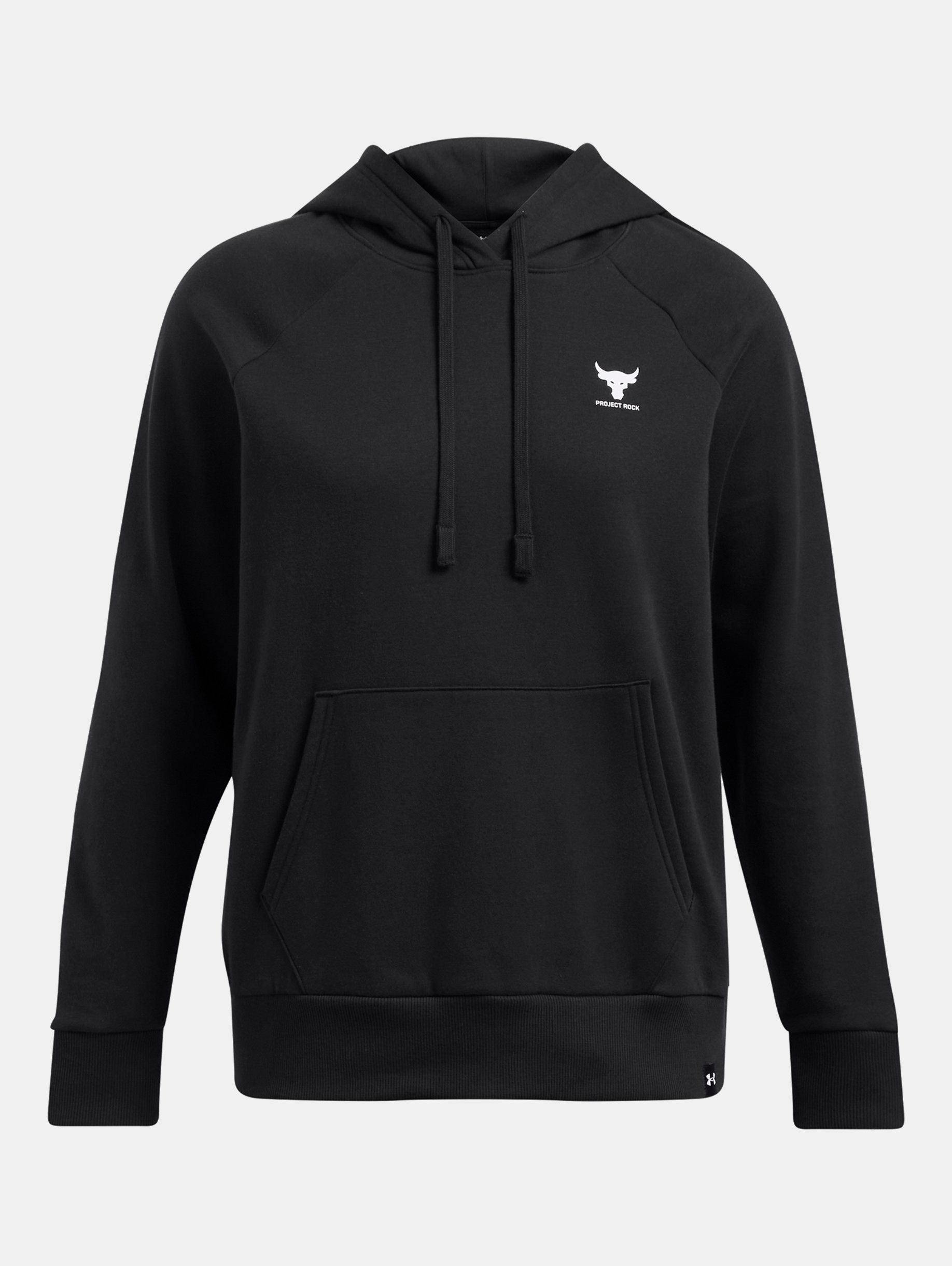 What's it do? Project Rock training gear was built to help you find boundaries, then push right through them. Everything in this collection was personally approved by Dwayne Johnson, the hardest worker in the room. ANY room. Product DNA - Ultra-soft cotton-blend fleece with brushed inside for extra warmth - Front kangaroo pocket - Ribbed cuffs & bottom hem - Main body fabric engineered to reduce fiber shedding leveraging Under Armour's Fiber Shed Test Method - Loose: Fuller cut for complete comfort. - Style #: 1389335 - 56% Cotton/44% Polyester - Imported