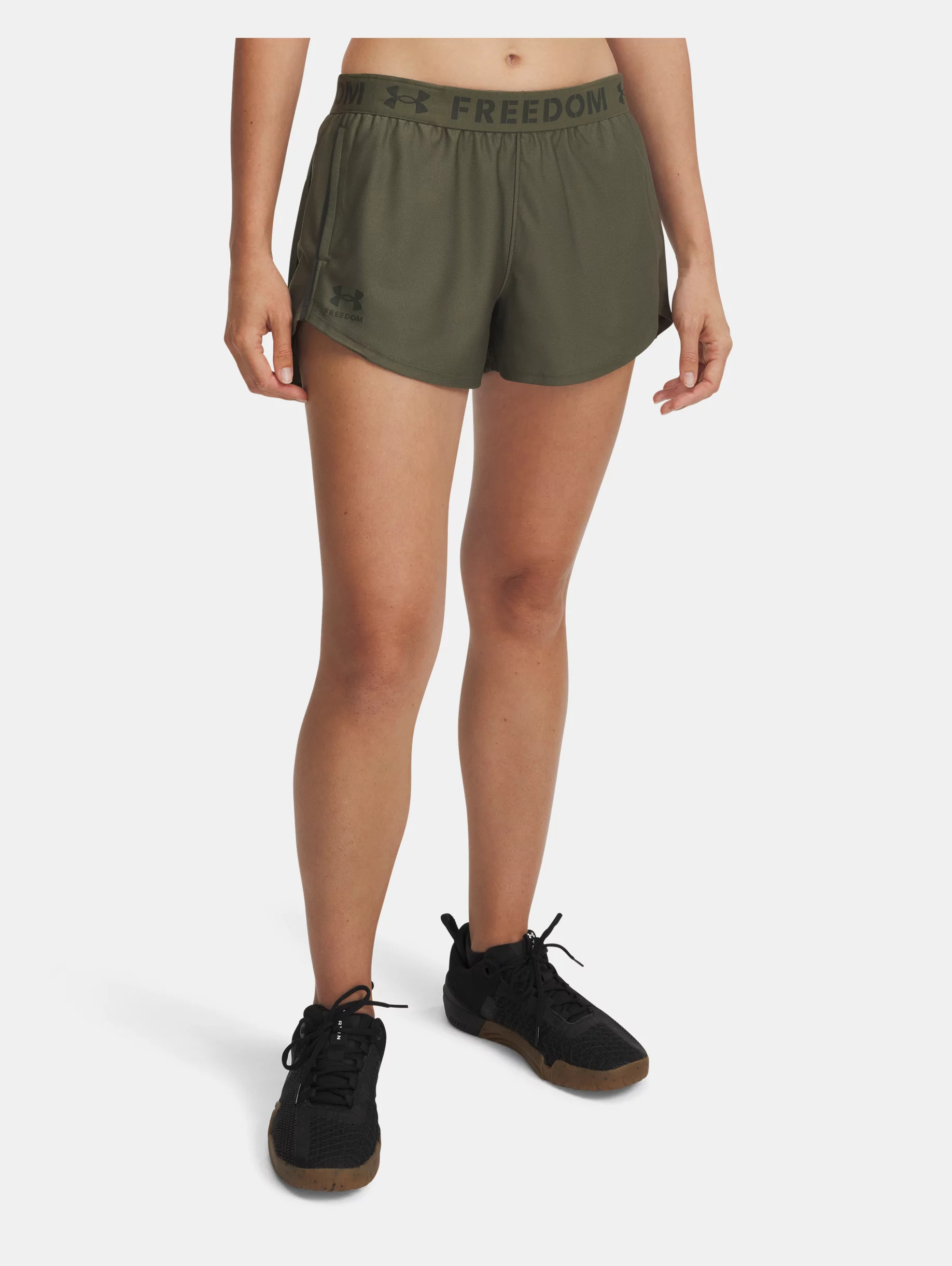 What's it do? UA Freedom's goal is to support and inspire the brave men and women dedicated to protecting us, every day. These shorts are light, comfortable, and shaped to move with you. Product DNA - Soft, lightweight knit fabric delivers superior comfort & breathability - Material wicks sweat & dries really fast - Side panel with color-pop piping detail - Low-rise, exposed elastic waistband with updated wordmark print - Open hand pockets - Shaped hem for a more flattering fit & better range of motion - Main body fabric contains at least 90% recycled polyester, excluding trims & embellishments - Loose: Fuller cut for complete comfort. - Style #: 1389777 - Inseam: 3" - Pockets: Yes - 100% Polyester - Imported