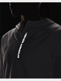 What's it do? The UA Outrun The Storm series isn't just water-resistant—it's super-water-resistant, meaning it protects better and lasts longer than other run rain gear. And it's more stretchy and comfortable, so you'll be more focused. Product DNA - UA Storm technology repels water without sacrificing breathability - Wind-resistant construction protects you from the elements - Durable, lightweight stretch-woven fabric provides enhanced mobility & comfort - 4-way stretch material moves better in every direction - Back vents for added breathability - Secure, zip hand pockets with right-side interior media pocket - Reflective details for low-light runs - Uses a fluorine-free water repellent treatment - Fitted: Streamlined fit that’s not too tight or too loose. - Style #: 1377043 - Encased elastic cuffs - 87% Polyester/13% Elastane - Imported