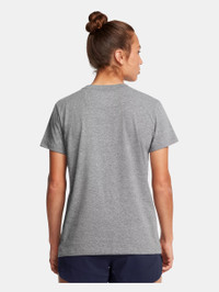 What's it do? Everyone makes graphic Ts...but Under Armour makes them better. The fabric we use is light, soft, and quick-drying. Product DNA - Super-soft, cotton-blend fabric provides all-day comfort - 4-way stretch material moves better in every direction - Ribbed collar - Loose: Fuller cut for complete comfort. - Style #: 1383648 - 57% Cotton/38% Polyester/5% Elastane - Imported
