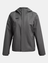 What's it do? Finding the perfect rain shell is tough—there are a million out there. But none quite like this, built for athletes first. It's crazy-light, 100% waterproof, and you won't overheat. Product DNA - UA Storm technology repels water without sacrificing breathability - 2-layer outer fabric with fully taped seams is 100% waterproof & windproof - Interior woven lining for added comfort & warmth - Front hood adjust for optimal fit & protection - Secure, zip hand pockets & left chest pocket big enough for a playbook or tablet - ColdGear® knit cuffs with built-in thumbholes help keep the cold out - Bungee adjust bottom hem for a secure fit - Uses a fluorine-free water repellent treatment - Loose: Fuller cut for complete comfort. - Style #: 1369256 - 10k/10k rating - Body: 100% Polyester - Lining: 100% Nylon - Cuffs: 88% Polyester/12% Elastane - Imported