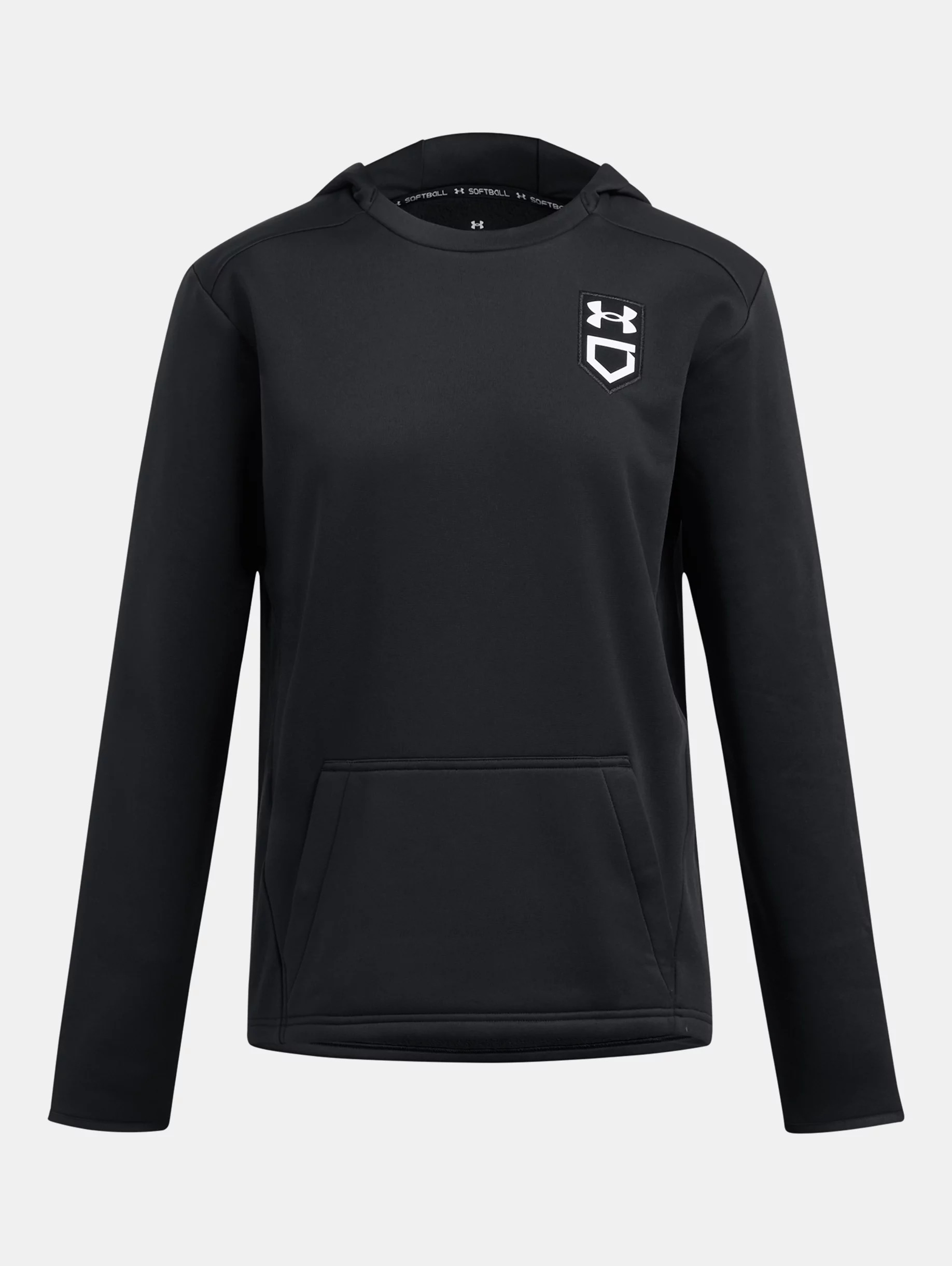 What's it do? Armour Fleece® is our original performance replacement for old-school fleece. It's light, incredibly warm, and has just the right amount of stretch. Product DNA - Armour Fleece® is light, breathable & stretchy for warmth that still lets you move - Soft inner layer traps heat to keep you warm & comfortable - Zero-distraction hood design with no drawstring gives you full peripheral vision - Room in shoulders & chest for comfort while wearing over a jersey - Tighter forearms stay put while batting & playing catch & shortened cuffs for comfort with batting gloves - Front kangaroo pocket with snap closure - Main body fabric contains at least 90% recycled polyester, excluding trims & embellishments - Loose: Fuller cut for complete comfort. - Style #: 1386962 - 100% Polyester - Imported