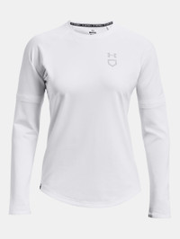 What's it do? This pullover has all the makings of greatness—light, stretchy, and warm. But the customizable sleeves are what sets it apart. Why? Because temps should be the least of your worries on practice and game days. Product DNA - Soft, textured ColdGear® knit fabric moves with you & provides exceptional warmth - Material wicks sweat & dries really fast - Mesh underarm panels for strategic breathability - Open hand pockets - Rip stitch convertible sleeves & collar so you can cut at the elbow seam for a short sleeve - Shaped hem - Loose: Fuller cut for complete comfort. - Style #: 1375666 - Body: 86% Polyester/14% Elastane - Mesh: 92% Polyester/8% Elastane - Imported