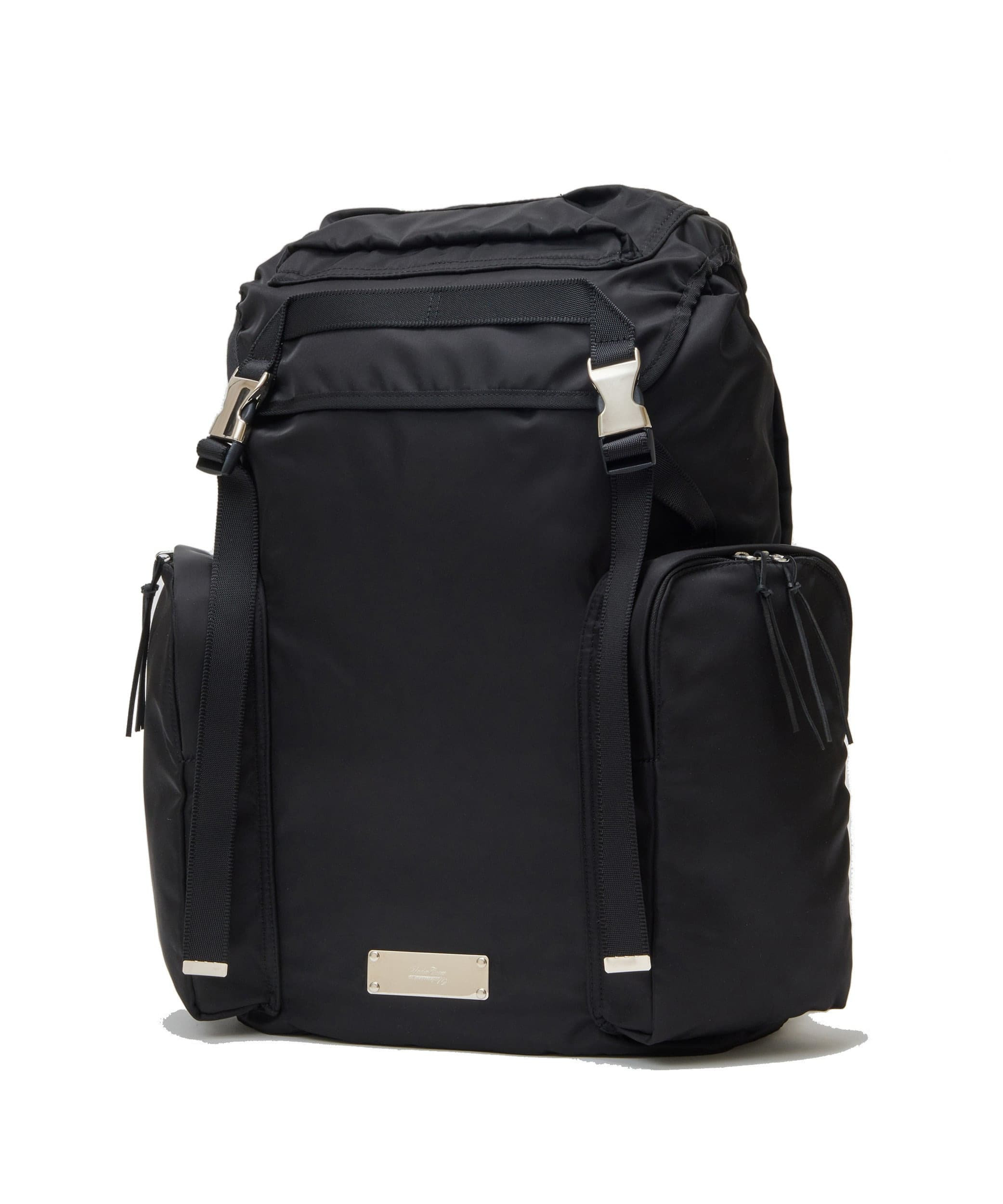 -Nylon backpack -Nylon mesh on the back -With inner pocket -With side pockets MATERIAL 100% NYLON LINING: 100% NYLON PARTLY 1: COWHIDE PARTLY 2: BRASS
