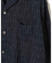 - Linen and cotton kasuri open-collar shirt - Cotton ribbed hem - Front patch pocket MATERIAL 50% LINEN, 50% COTTON RIB: 100% COTTON