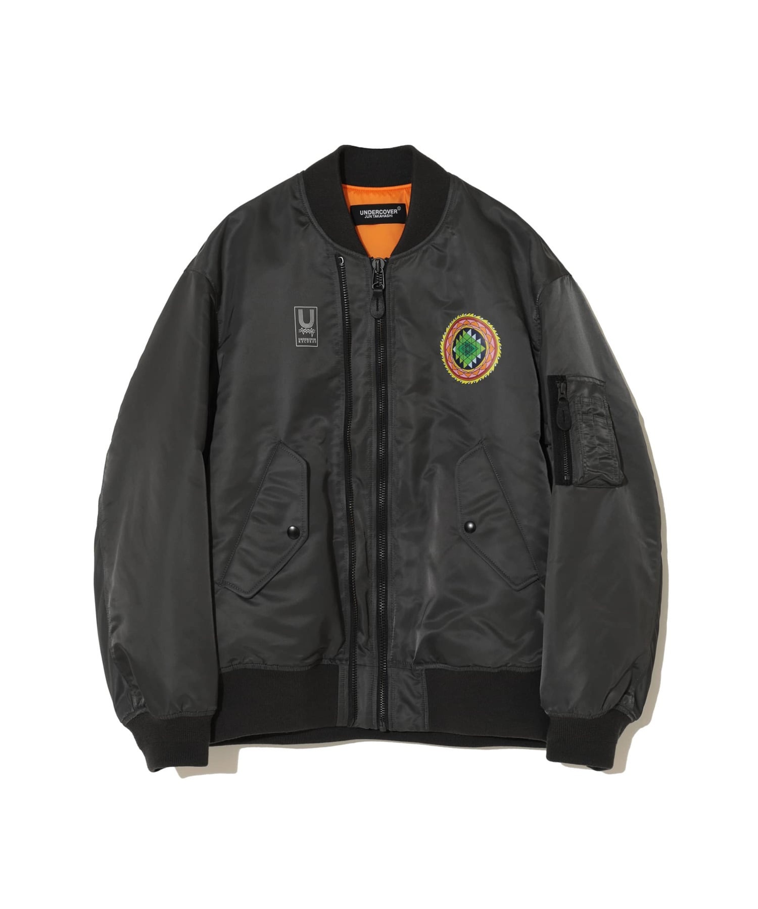 -Nylon MA-1 jacket -Front flap pocket -Zipper pocket on arm -Graphic print on front and back © 2024 All Rights Reserved Spoon Records. MATERIAL 100% NYLON FILLING: 100% POLYESTER LINING: 100% POLYESTER RIB: 70% ACRYLIC, 30% WOOL