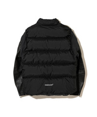 -Leather sleeve down blouson -Distressed leather sleeves -Zipper pockets on front and sleeves -Logo printed on the back MATERIAL SURFACE1: 100% POLYESTER SURFACE2: SHEEP SKIN FILLING: 90% DOWN, 10% FEATHER LINING1: 100% POLYESTER LINING2: 100% CUPRO RIB: 100% COTTON