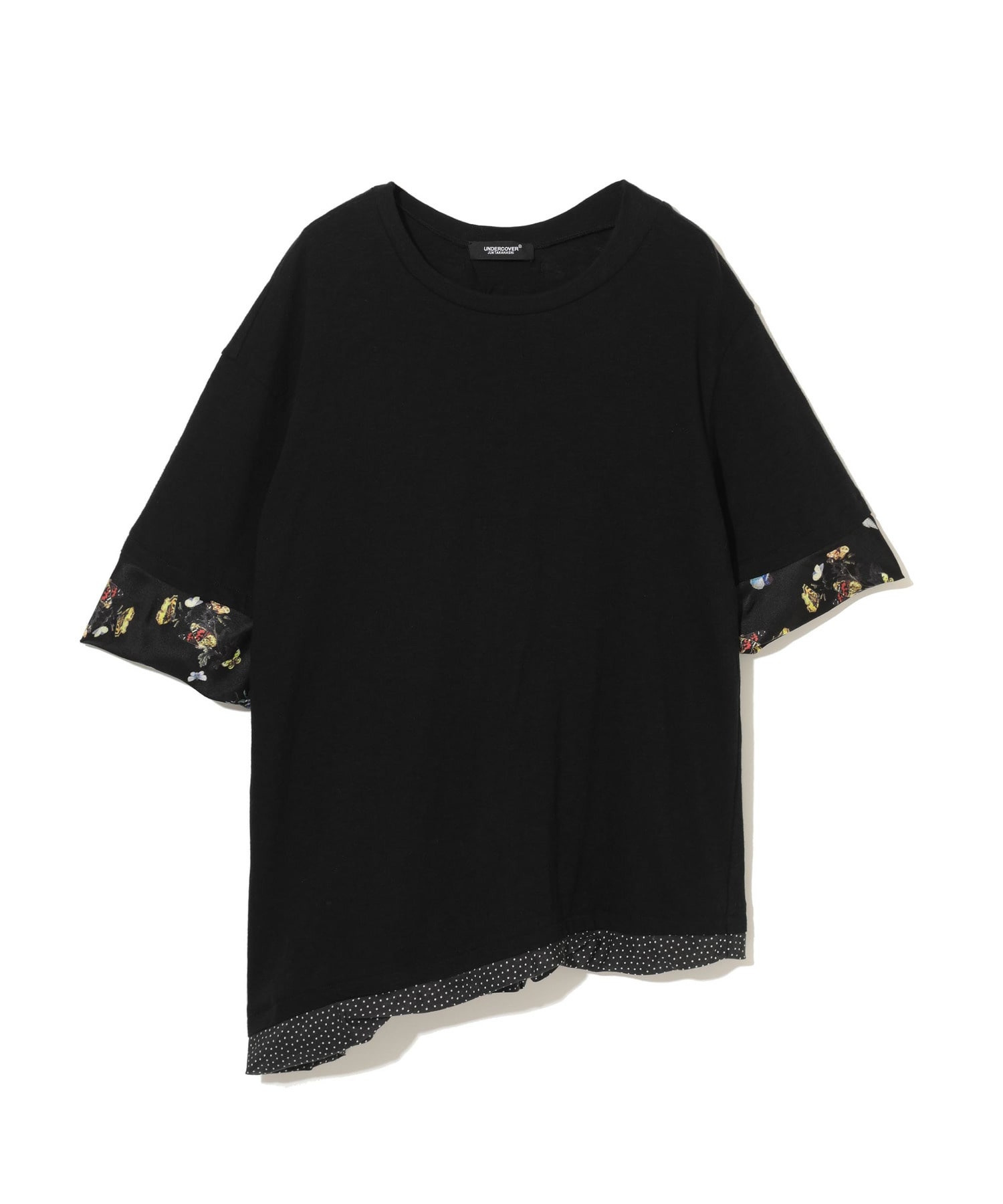 -Cotton layered T-shirt -Silk accents -Back tag MATERIAL 100% COTTON PARTLY1: 100% SILK PARTLY2: 70% COTTON 30% SILK RIB: 100% COTTON