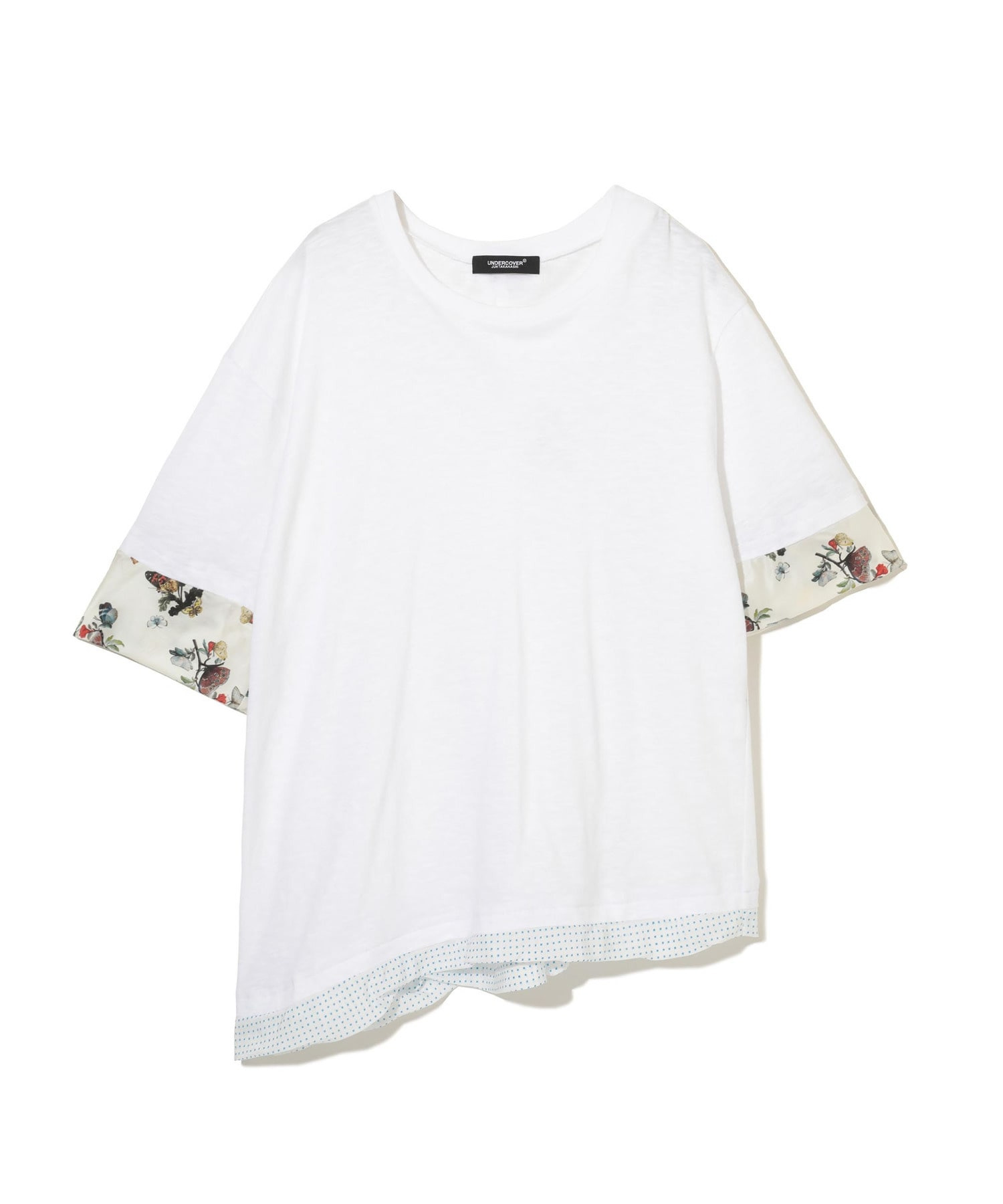 -Cotton layered T-shirt -Silk accents -Back tag MATERIAL 100% COTTON PARTLY1: 100% SILK PARTLY2: 70% COTTON 30% SILK RIB: 100% COTTON